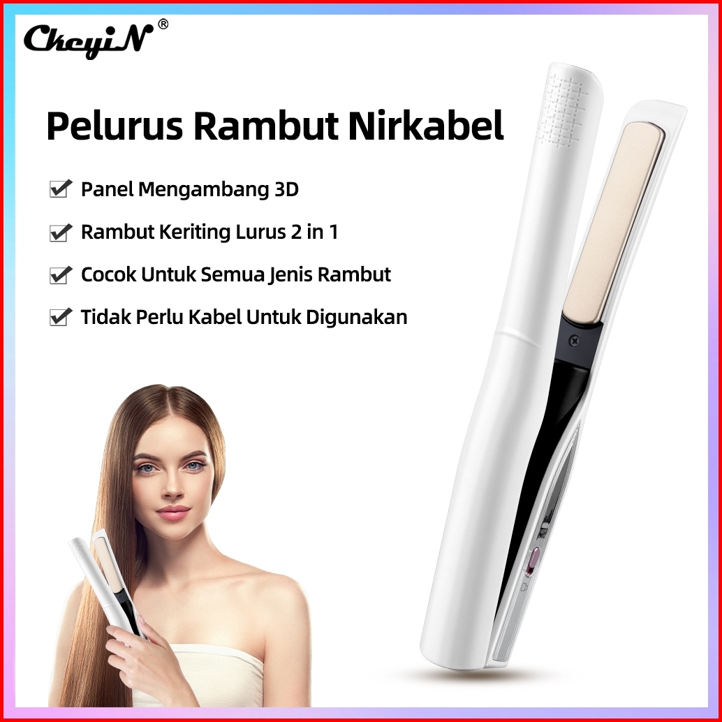 Ckeyin Catokan Rambut 2 In 1 Tanpa Kabel Hair Straightener Cordless Alat Catok Rambut Nirkable 18mm