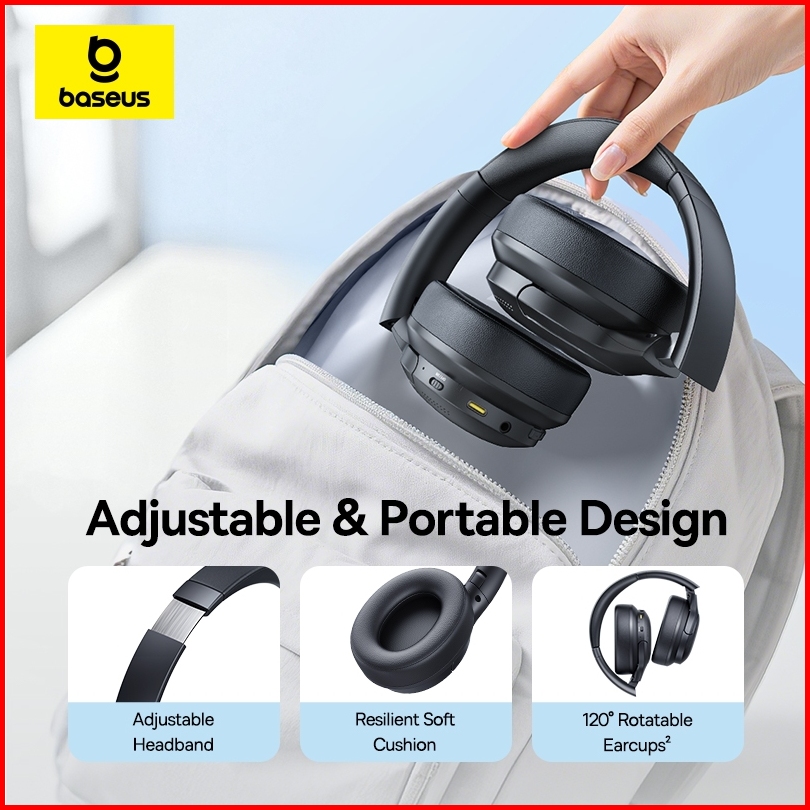 Baseus Bass Bh1 Lite Wireless Headphone Super Bass Spatial Audio 80 Hour Playtime Ai Enc 40mm Dynamic Drivers