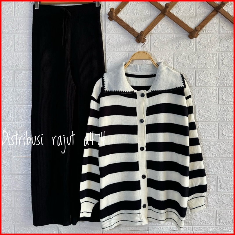 Oneset Zulaikha Setelan Celana Kulot Rajut Wanita Lengan Panjang