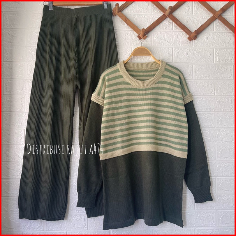 Oneset Anita Cyra Setelan Celana Rajut Kulot Wanita