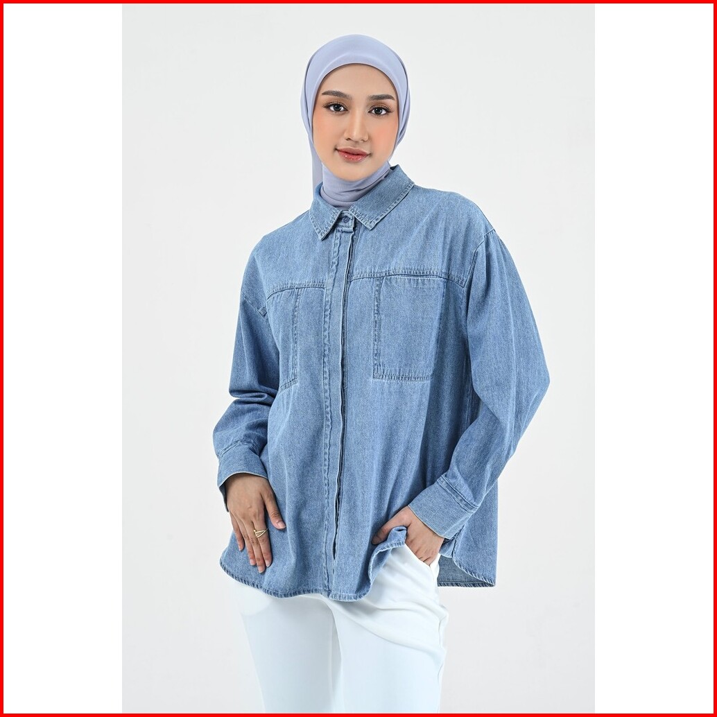 Geulis.id Lonita Shirt Kemeja Denim Wanita 2 Warna