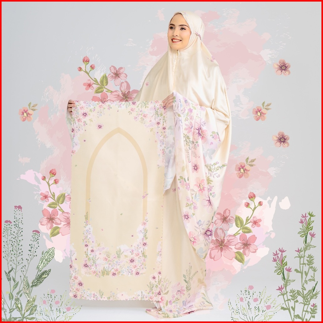 Veselka Lasha Marigold Series Mukena Dewasa Travel 2 In 1 Motif Printing Zipper Resleting Sajadah Mahar Pernikahan Hampe