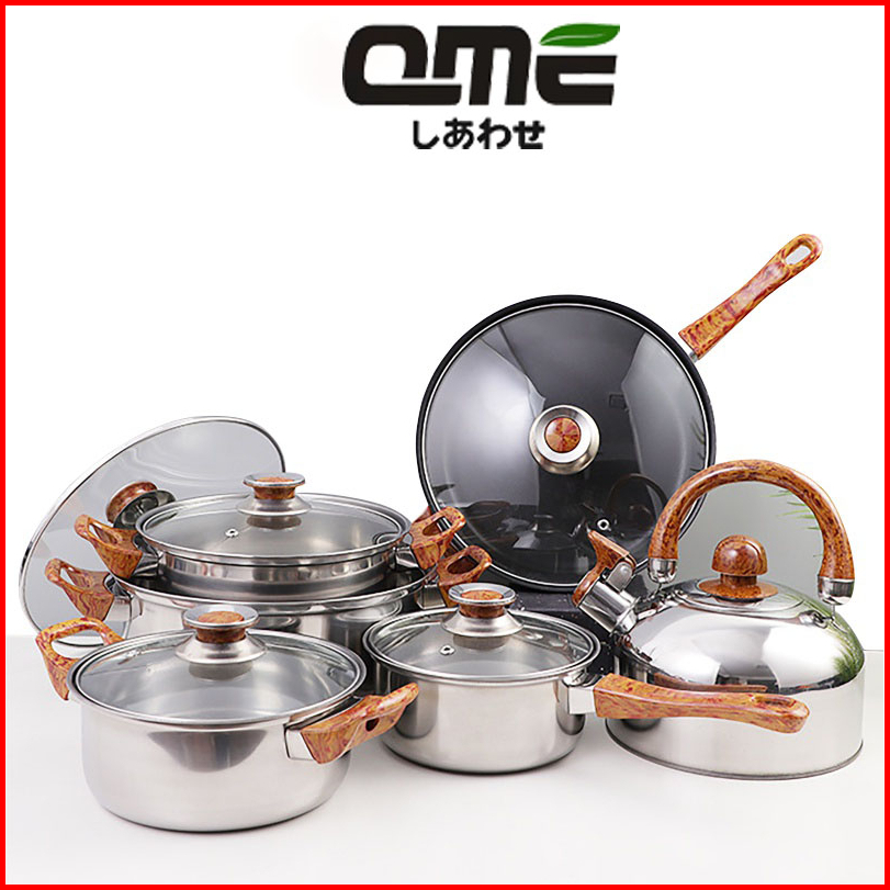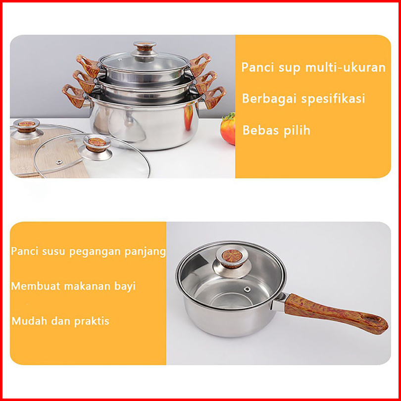 Qme Panci Set Stainless Steel Dengan 6 Pcs Dengan Teko Stainless Panci Serbaguna Isi