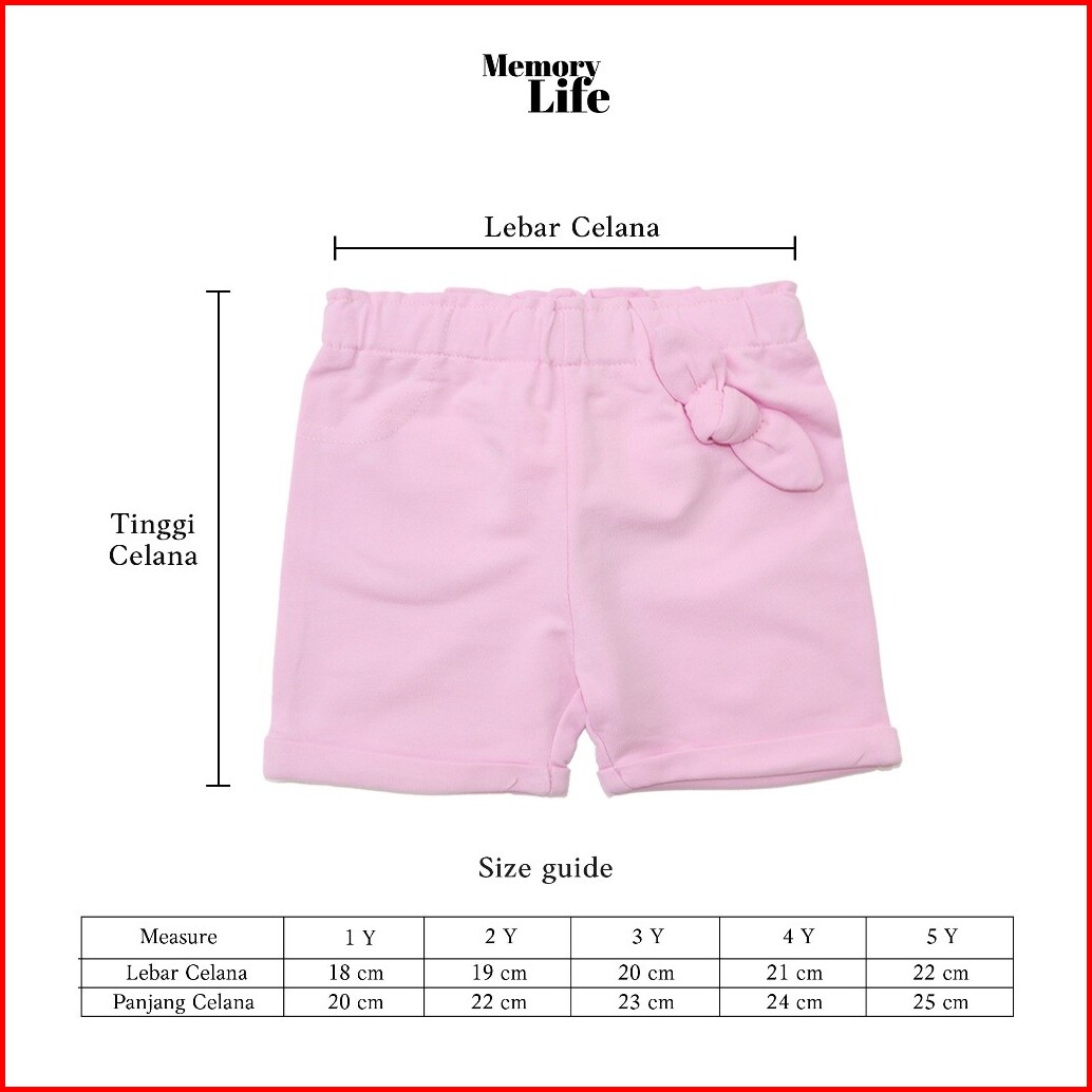 Memorylife - Sweet Bow Shorts Pants Celana Pendek Premium Anak Perempuan Umur 1 Tahun - 5