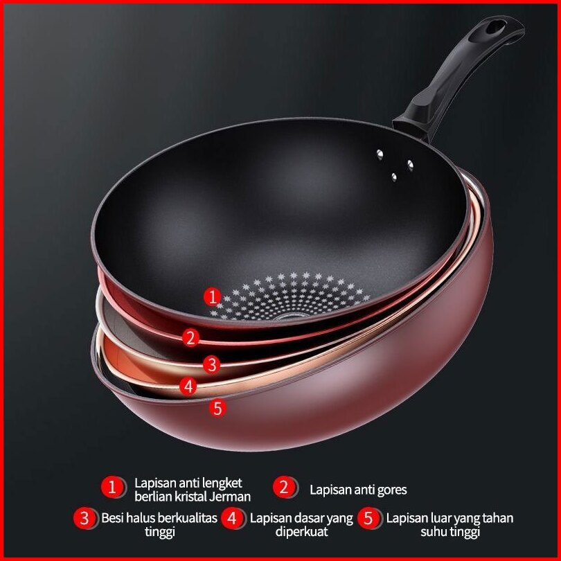 Diamond Wok Pan Wajan Penggorengan Lengket Anti Batu Medis Ukuran 33cm Wajan Medis Antilengket Bahan