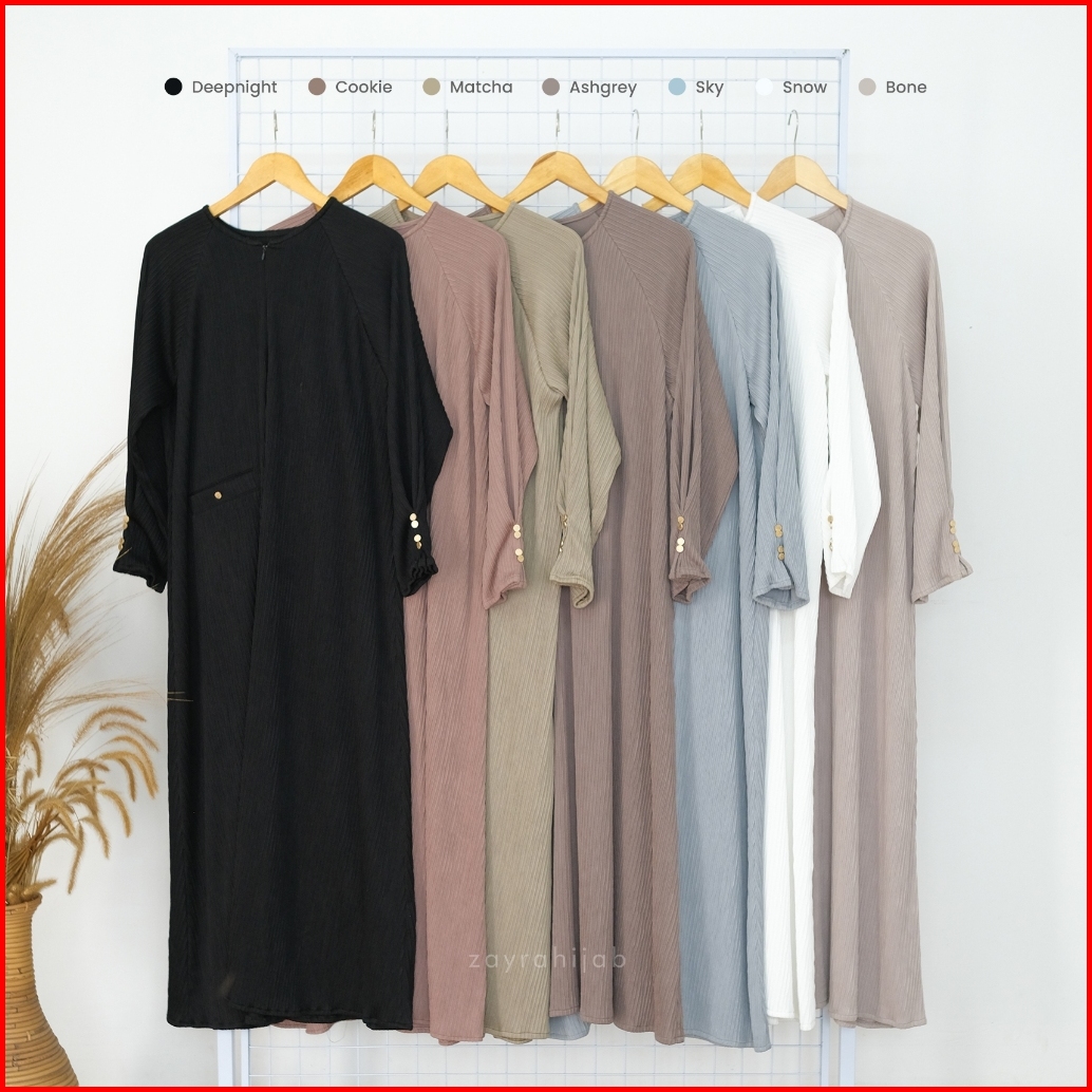 Zayra Hijab Ranaa Dress Gamis Knit Wanita Ukhti Set Hijab Daily Syari Simpel Premium Lebaran Jumbo Mewah Elegan Terbaru