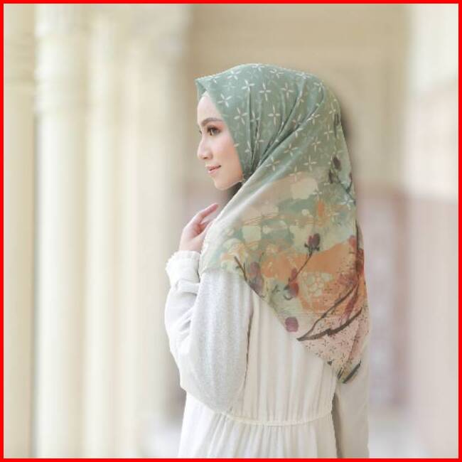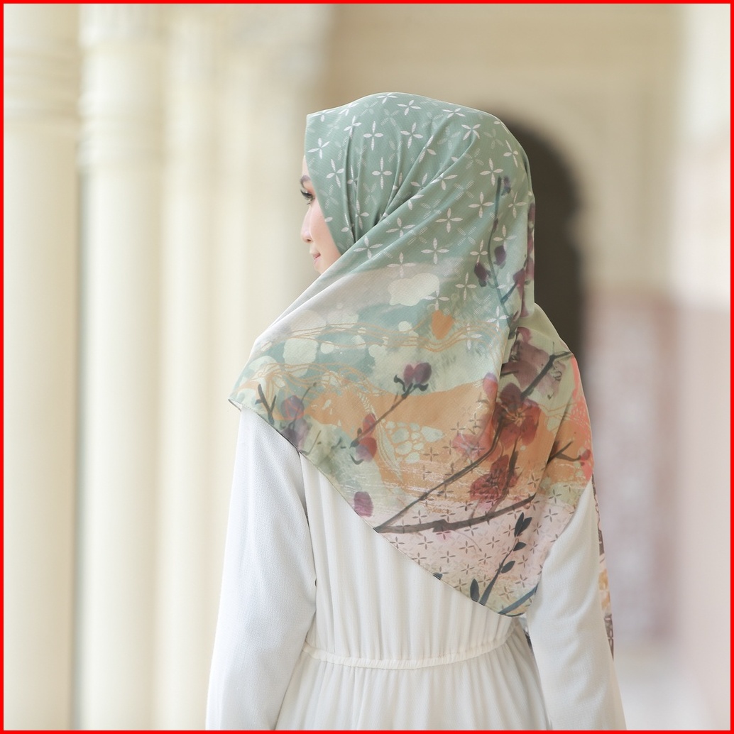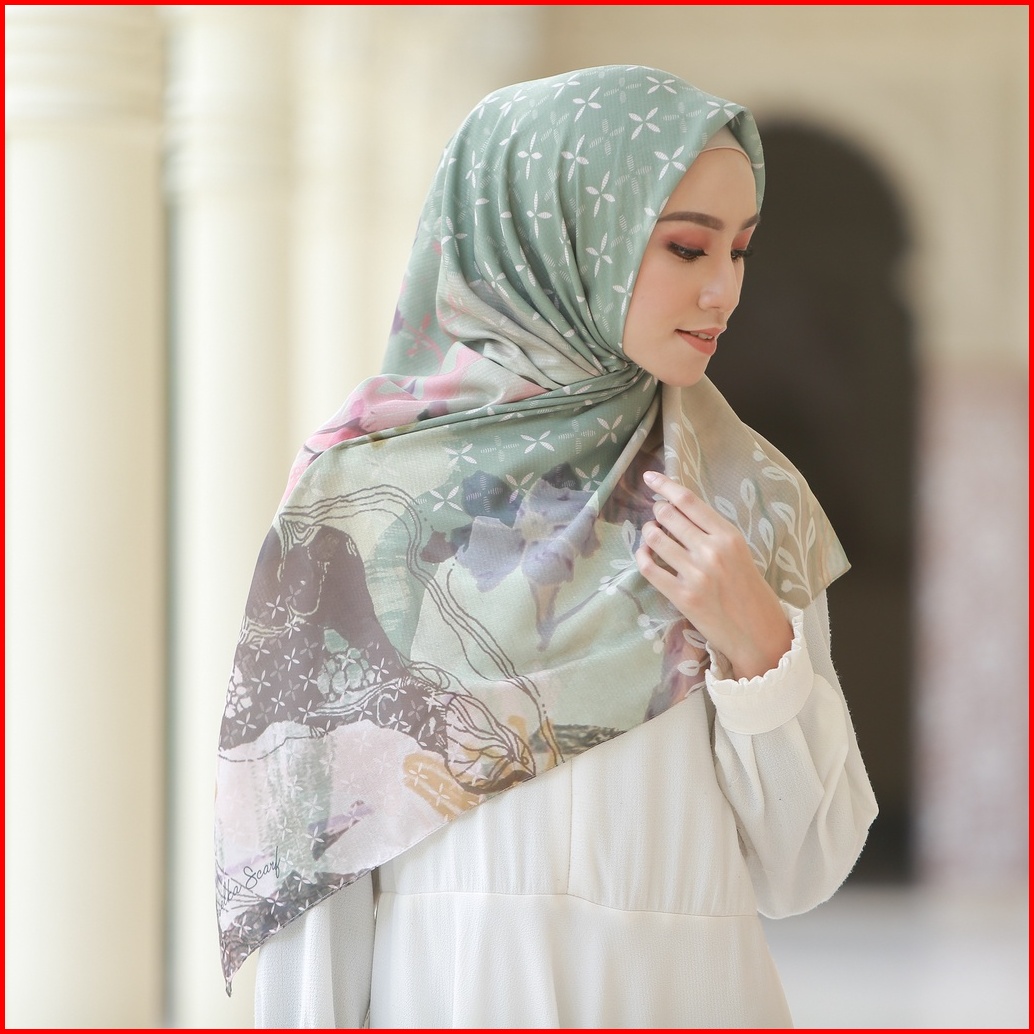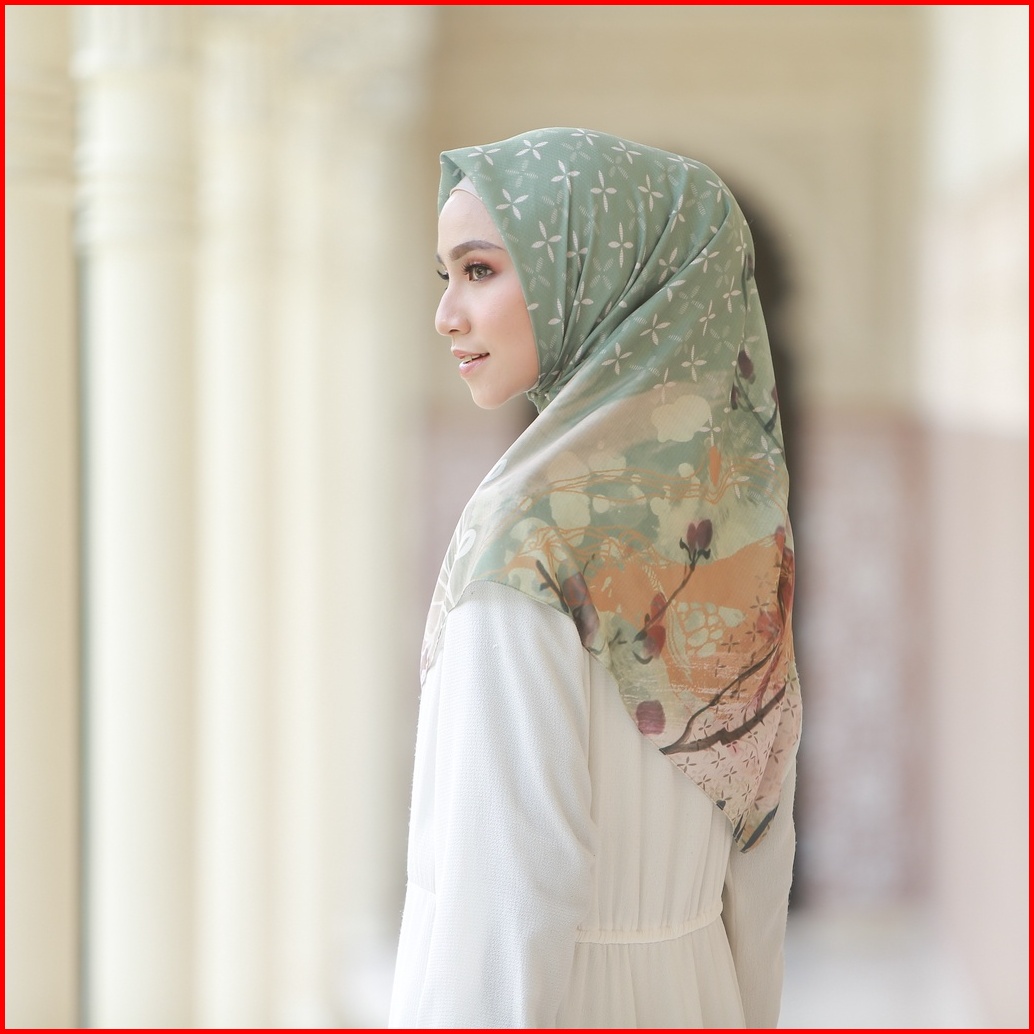 Veselka Classic Green Hijab Scarves Motif Bunga Printing Kerudung Jilbab Tudung Scarf Voal Syari Segiempat Wanita Premiu
