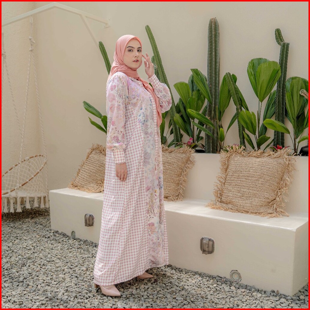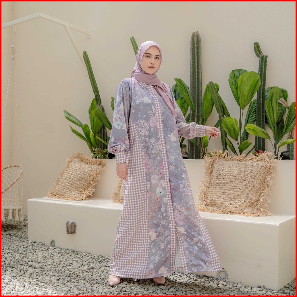 Veselka Geometric Blossom Dress Gaun Gamis Panjang Wanita Muslimah Motif Printing Bunga Cantik Premium