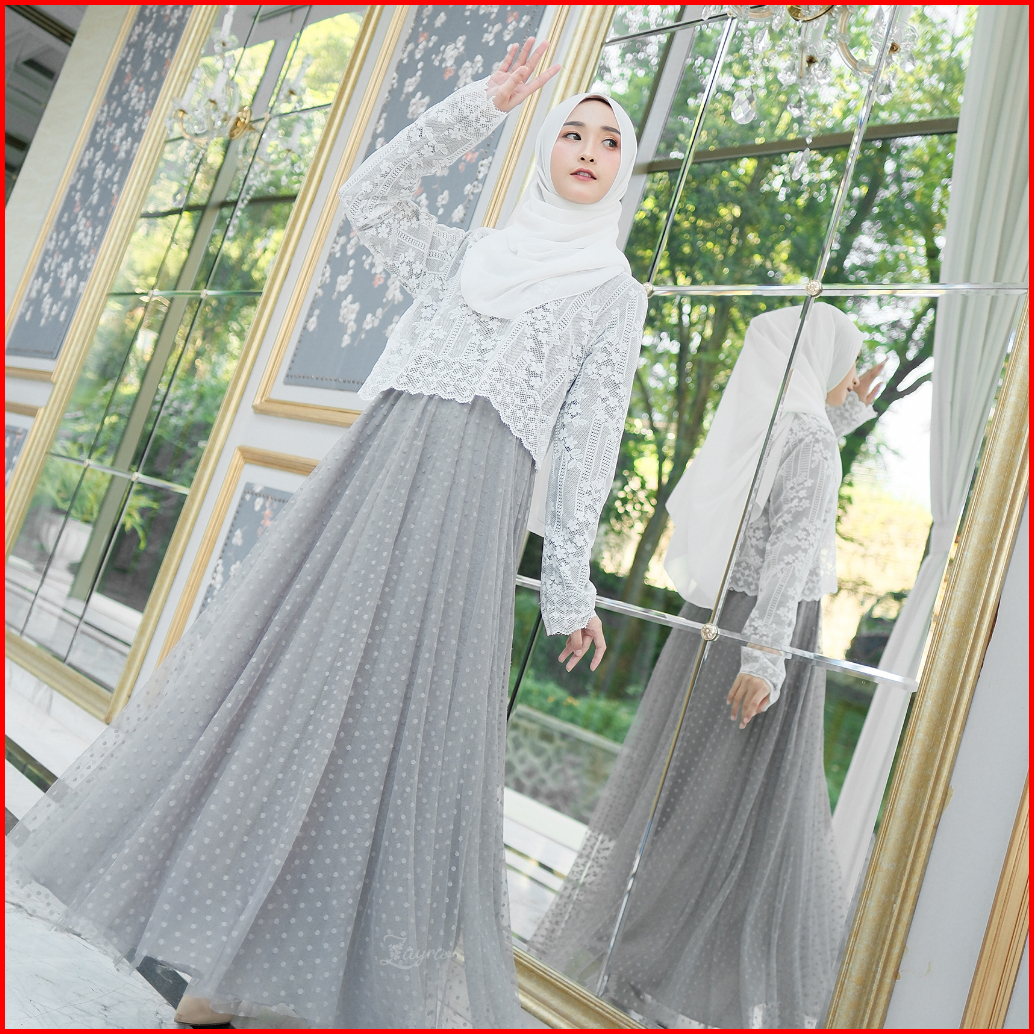 Zayra Hijab Ghania Dress Gamis Wanita Syari Brokat Tile Kondangan Lebaran Jumbo Mewah Elegan Premium Terbaru 2025