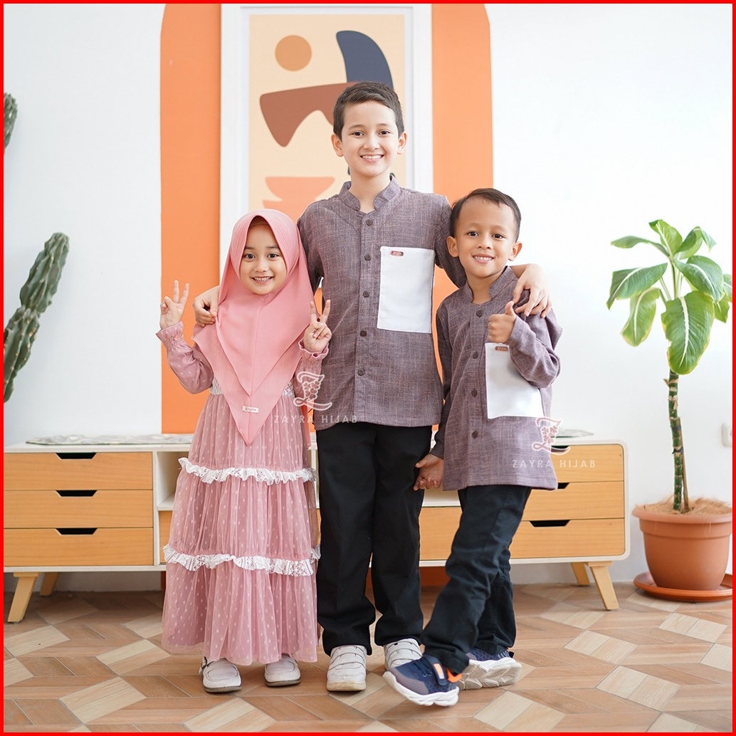 Zayra Hijab Koko Anak Ainaa Family Set Koko Anak Laki - Laki Lengan Panjang 0-12 Tahun Terbaru 2025 Premium