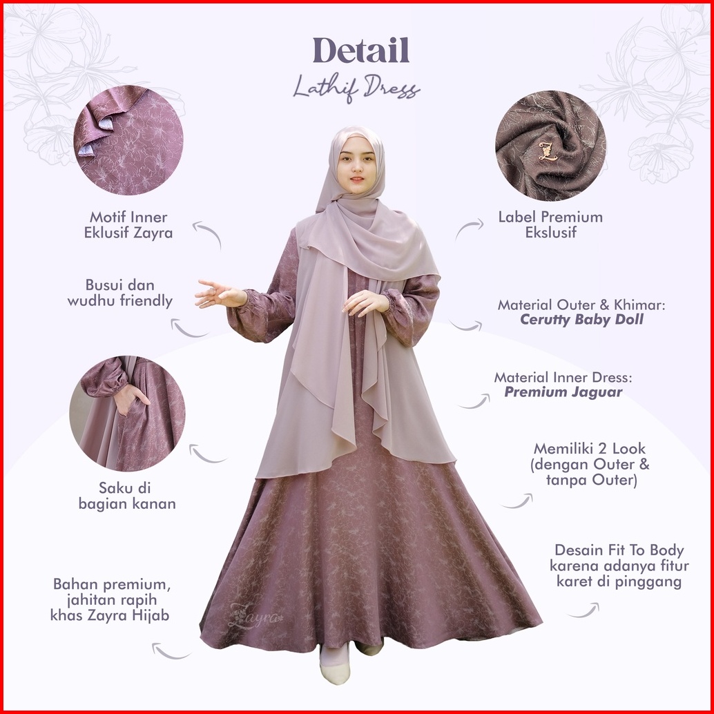 Zayra Hijab Gamis Dewasa Lathif Baju Couple Pasangan Keluarga Kondangan Lebaran Kekinian Premium Jumbo Mewah Elegan Terb