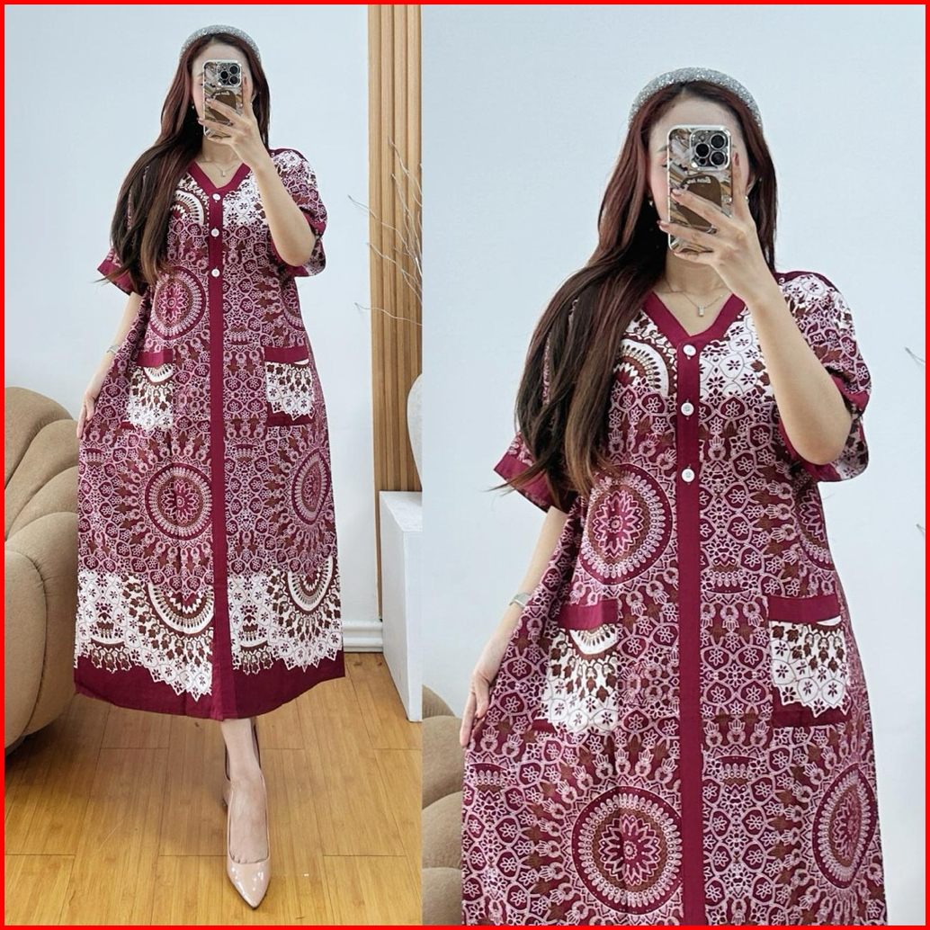 Dress Kancing Jumbo Ld 120 Motif Terbaru Bahan Rayon Tebal Nyaman Di Pakai Sehari-hari