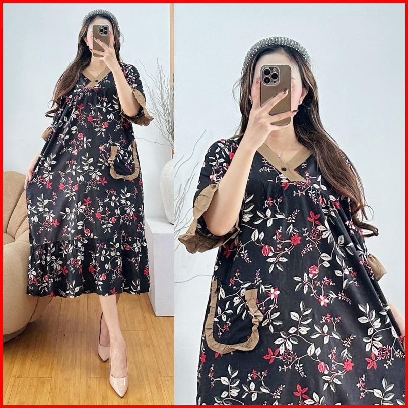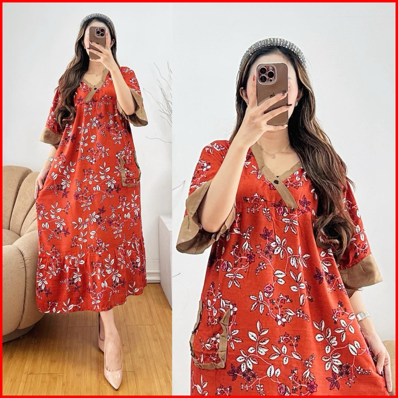 Daster Paula Bahan Rayon Premium Busui Friendly 3 Tiga Kancing Depan High Quality