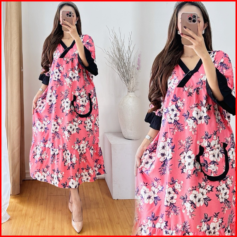Daster Paula Bahan Rayon Premium Busui Friendly 3 Tiga Kancing Depan High Quality