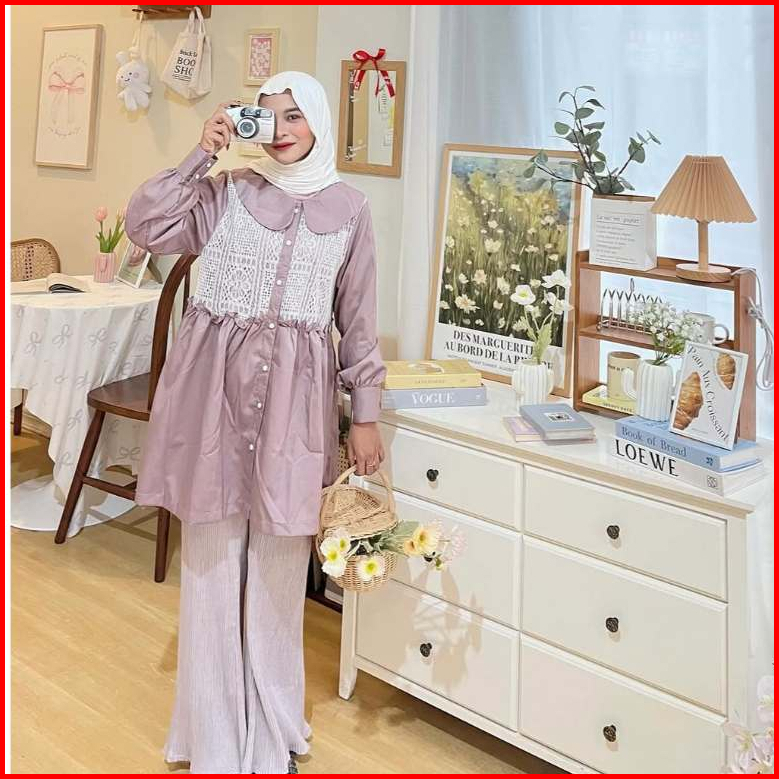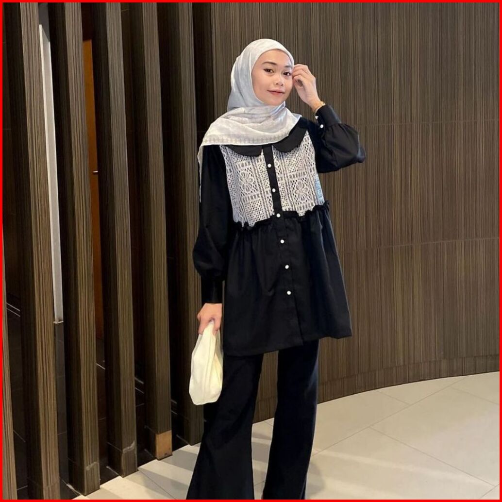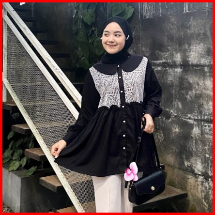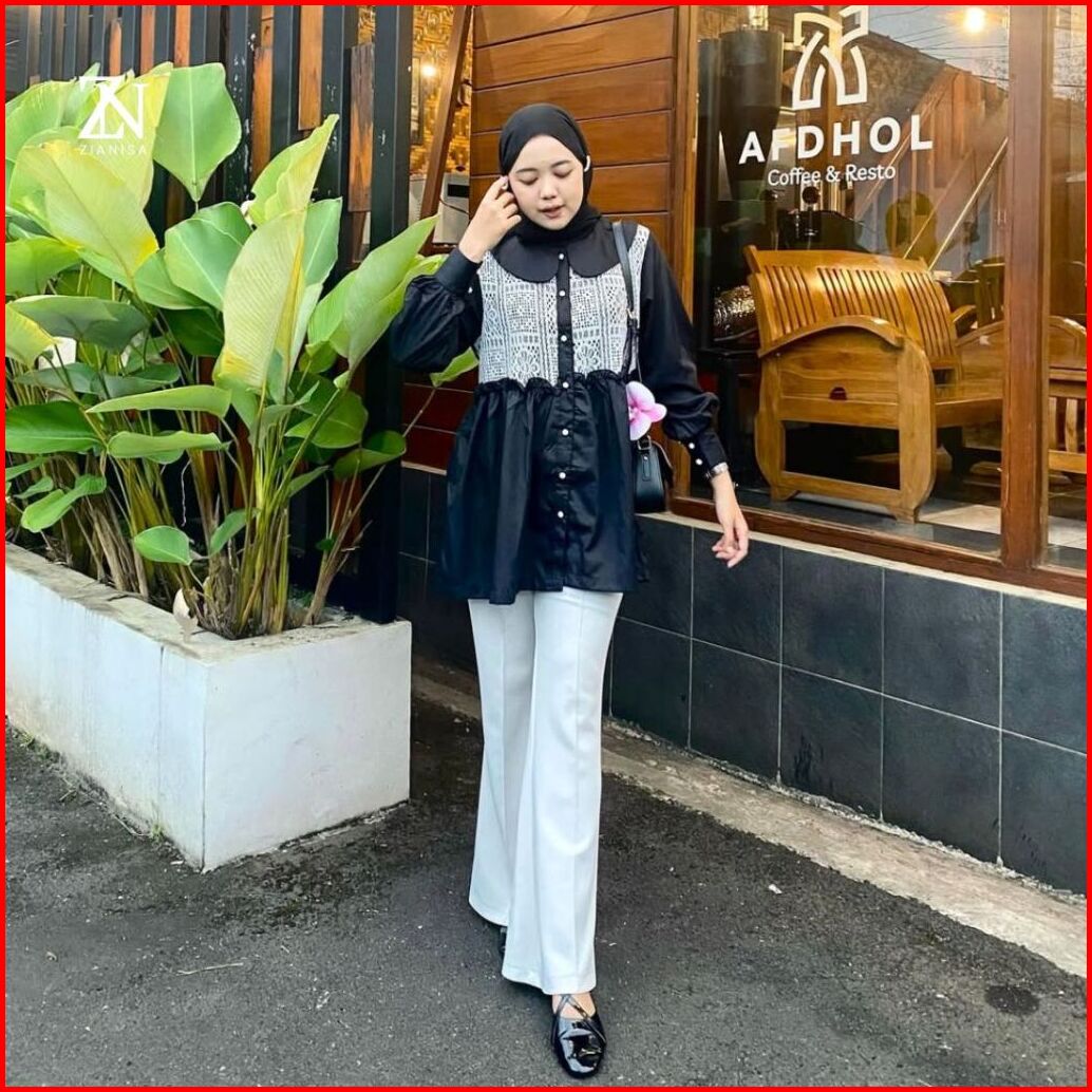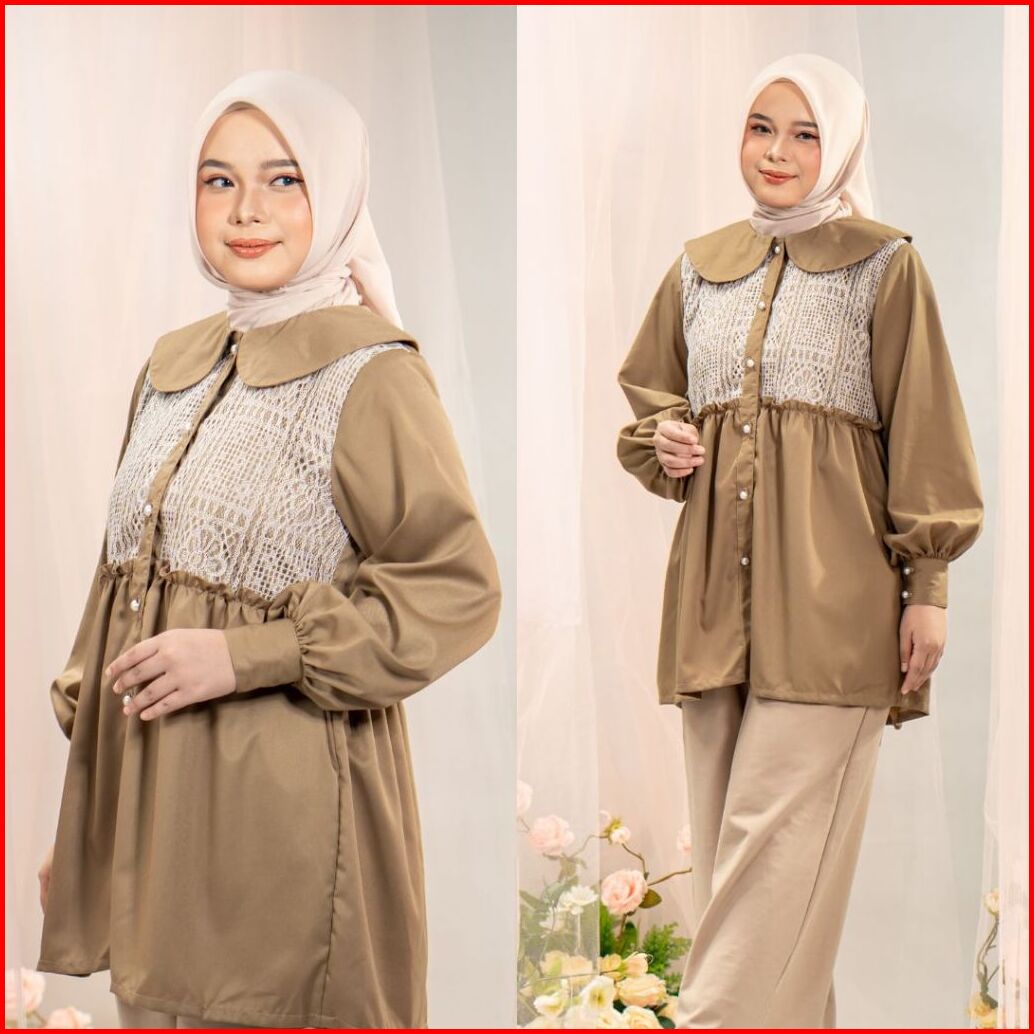 Zianisa - Blouse Wanita Mix Brokat Cassia Atasan Wanita Full Kancing Katun Premium