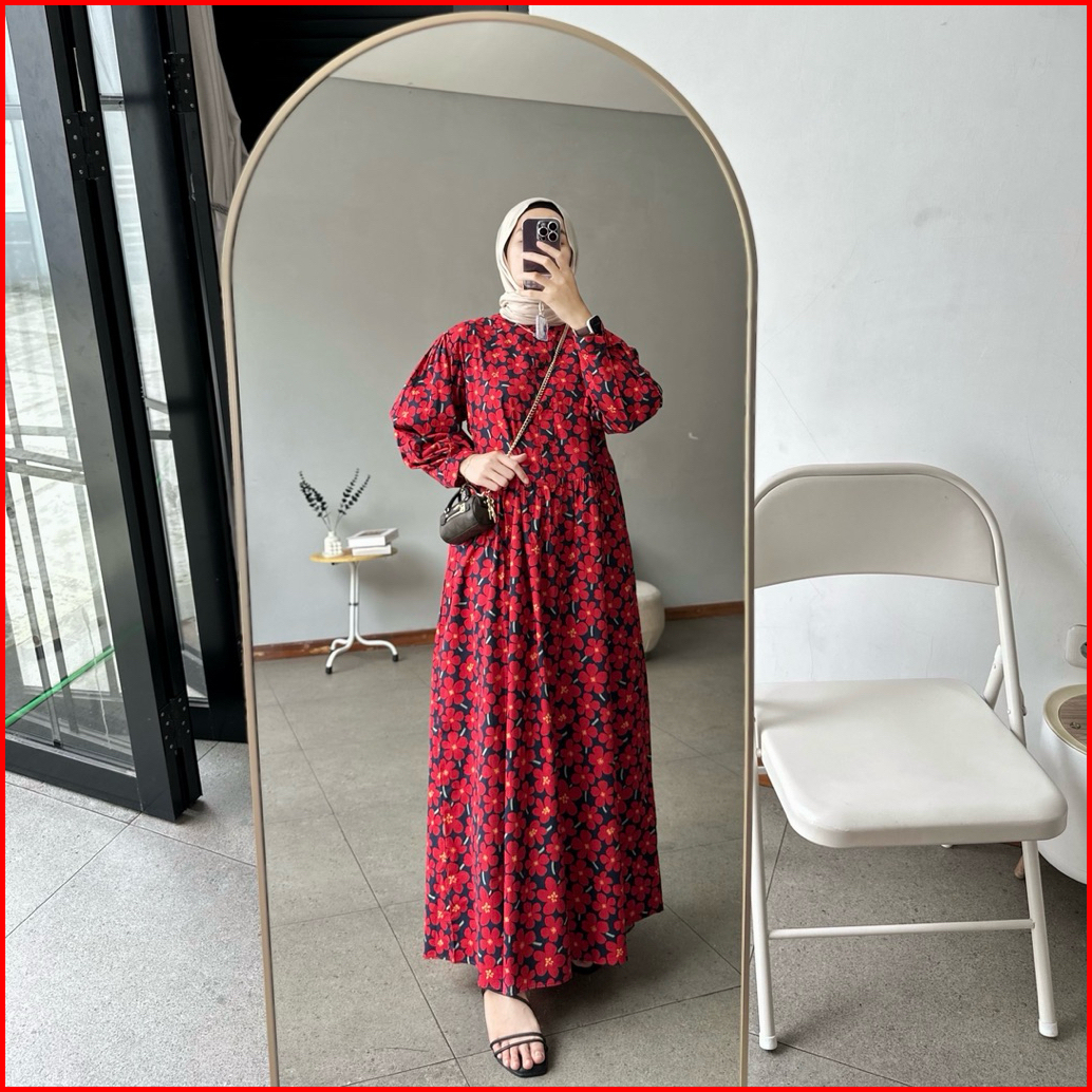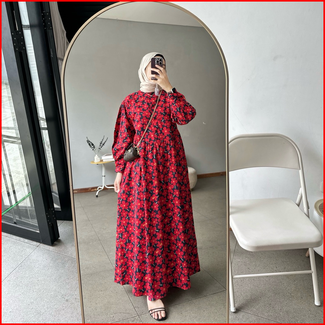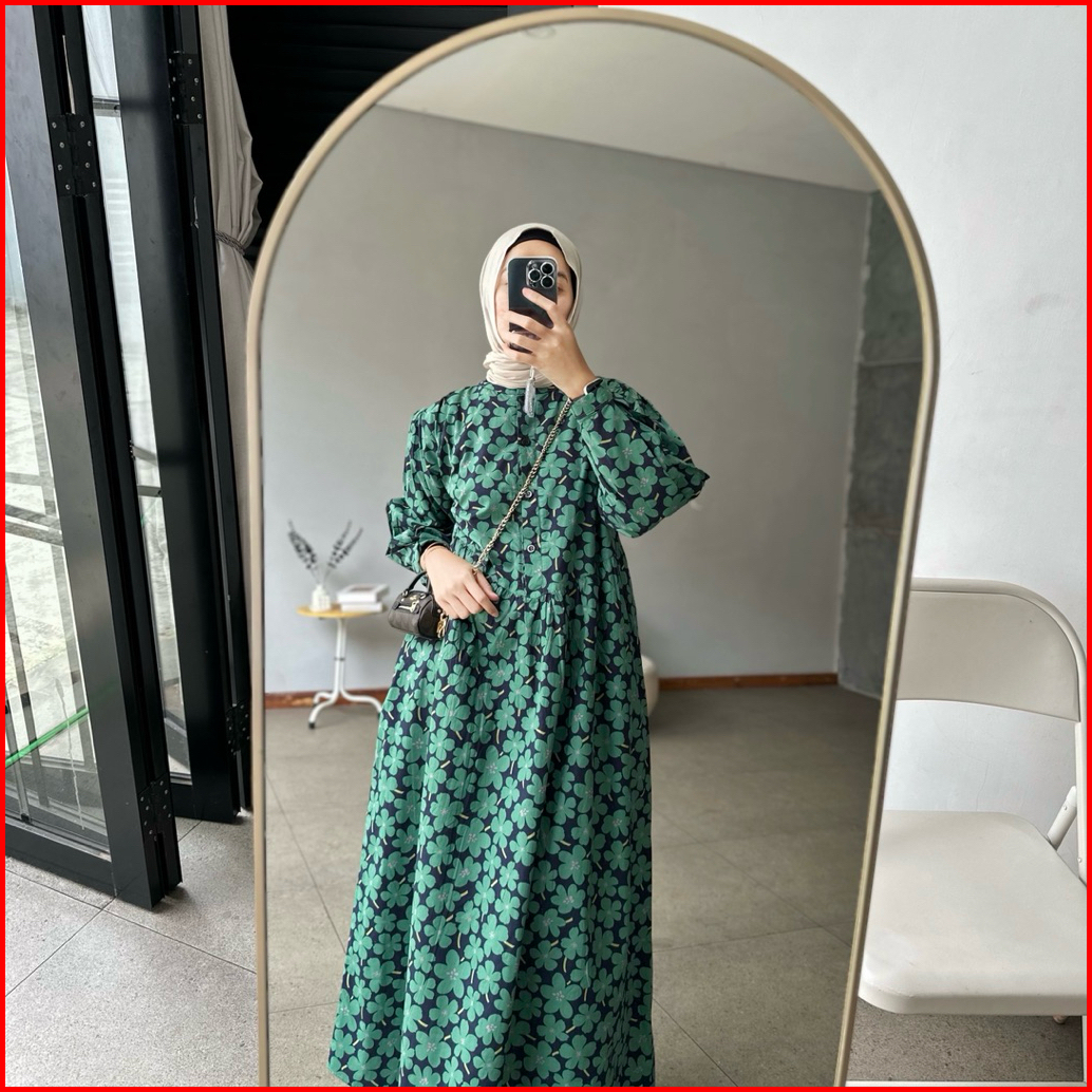 Proudyhijab - Yumi Dress Wanita Korean Style Motif Bunga Bunga Dress Lengan Panjang Busui Friendly Kancing Depan