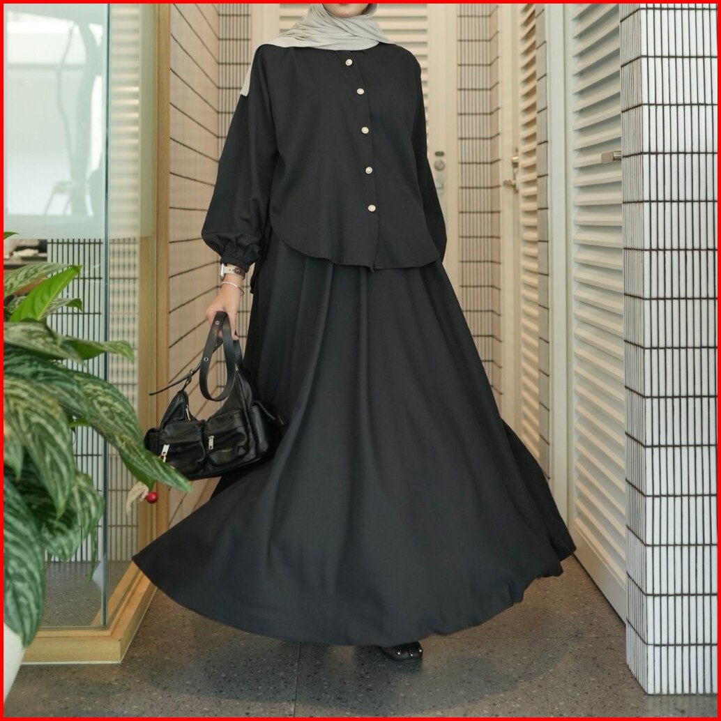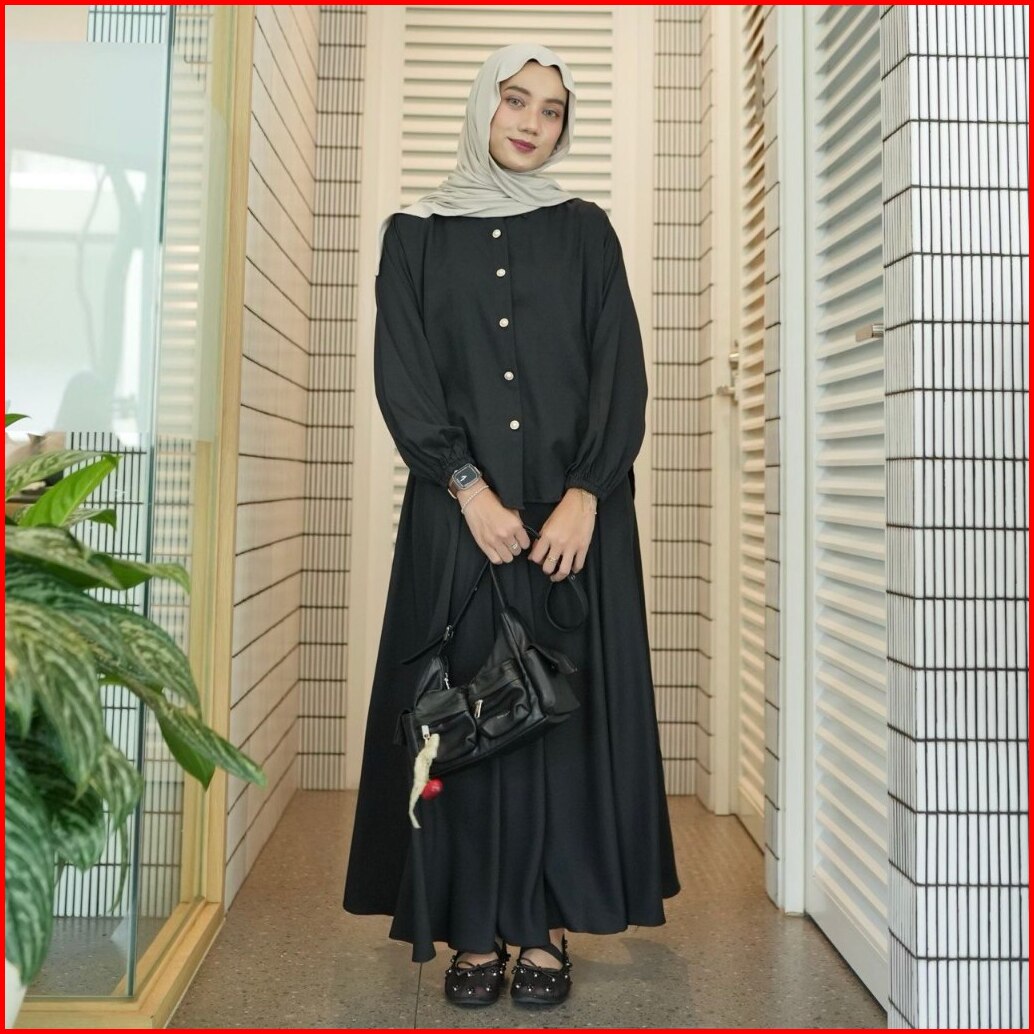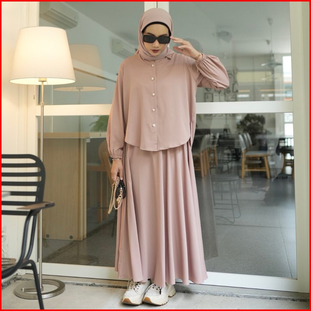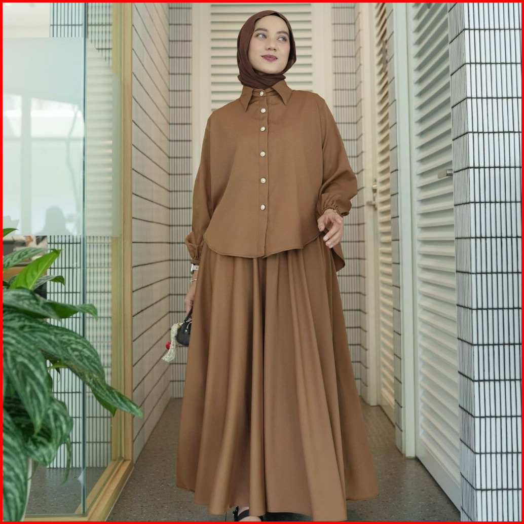 Proudyhijab - Serena Set Setelan Atasan Rok Bahan Tory Burch Setelan Wanita Kekinian Busui Friendly Full Kancing