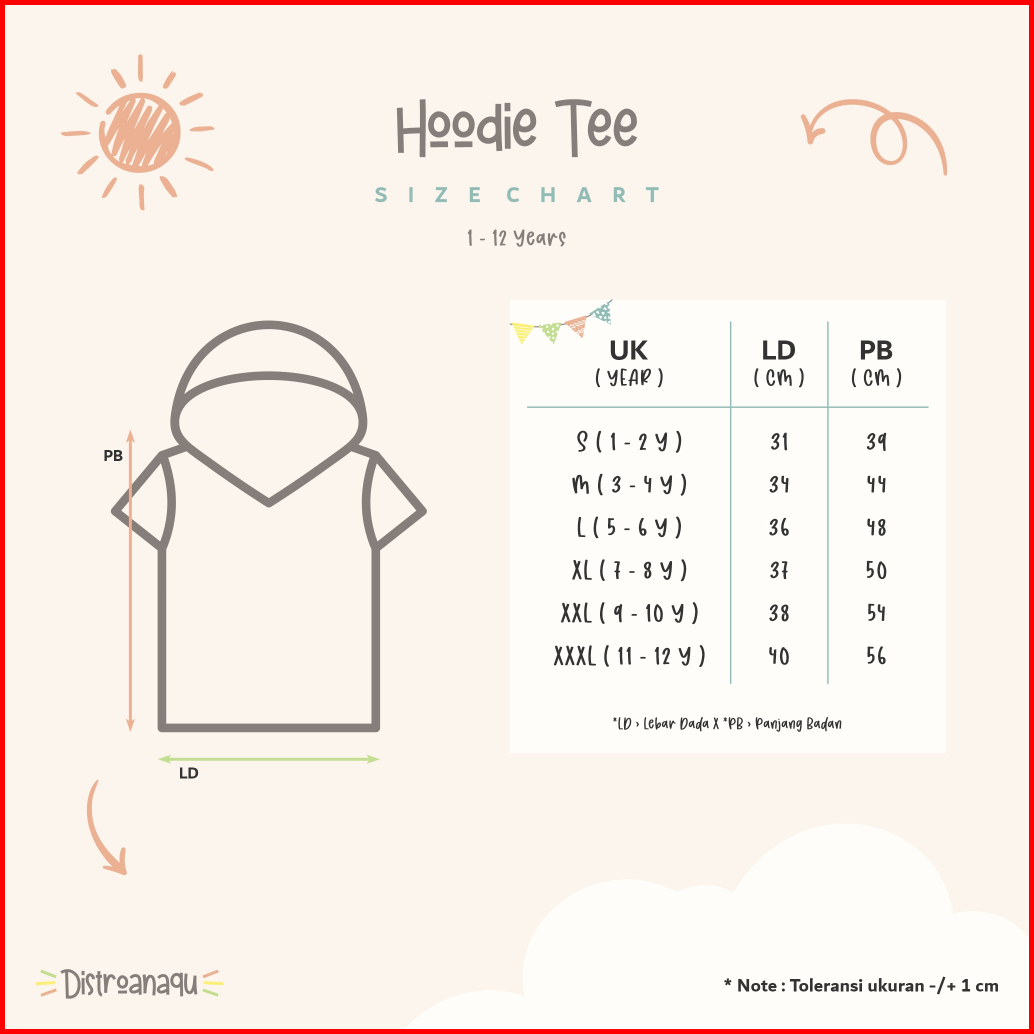 S 1-2 Tahun, M 3-4 Tahun, L 5-6 Tahun, XL 7-8 Tahun, 2XL 9-10 Tahun, 3XL 11-12 Tahun