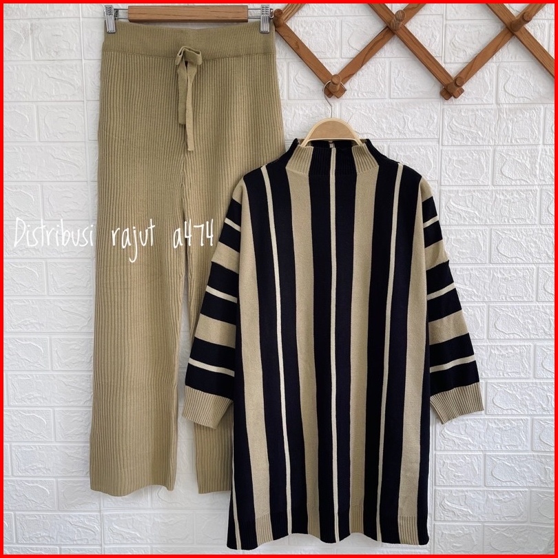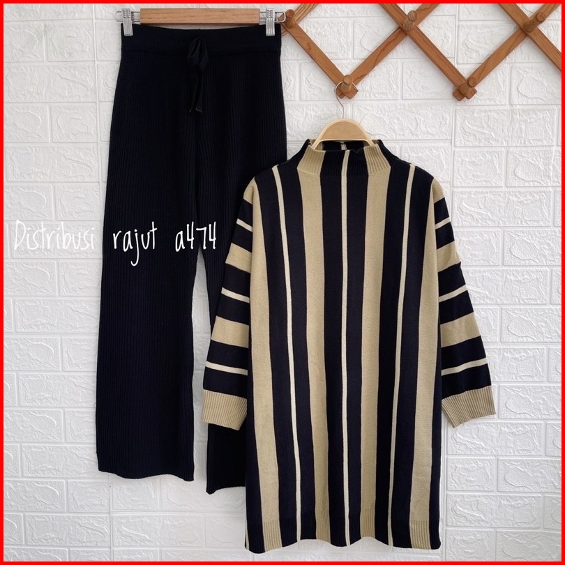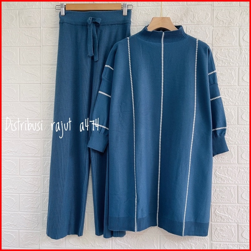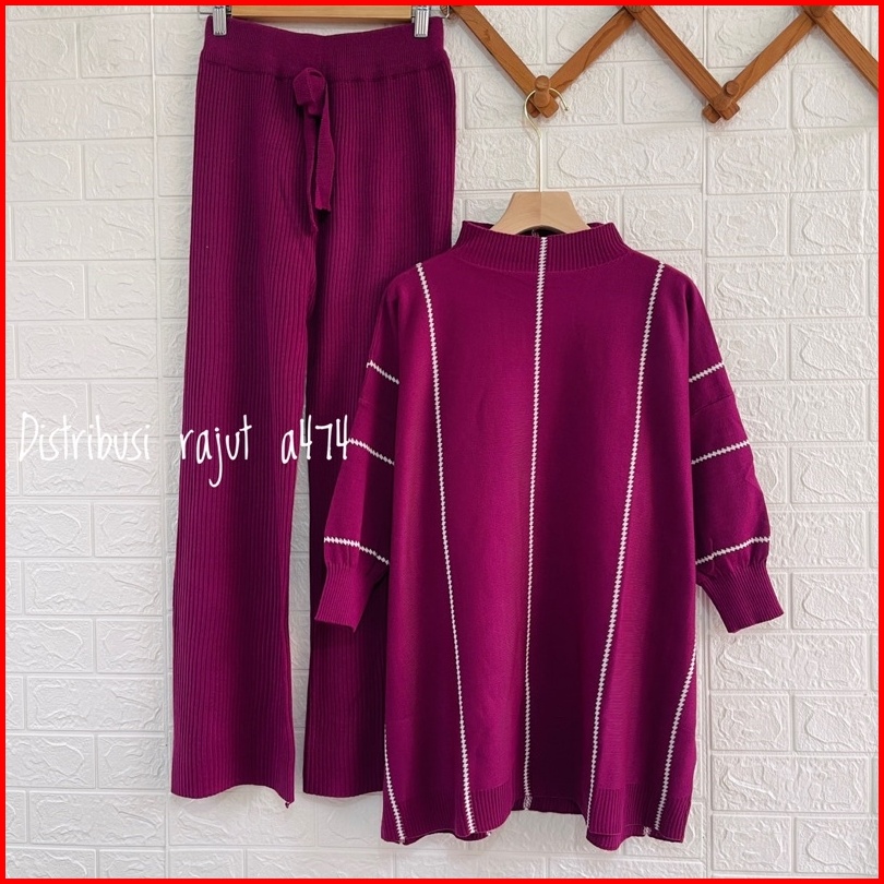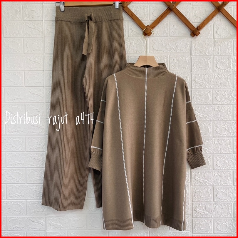 Oneset Noona Ovesize Top Setelan Celana Kulot Rajut