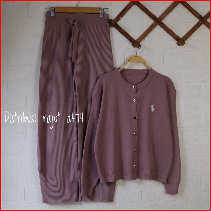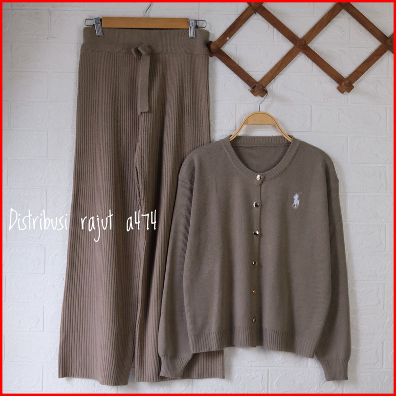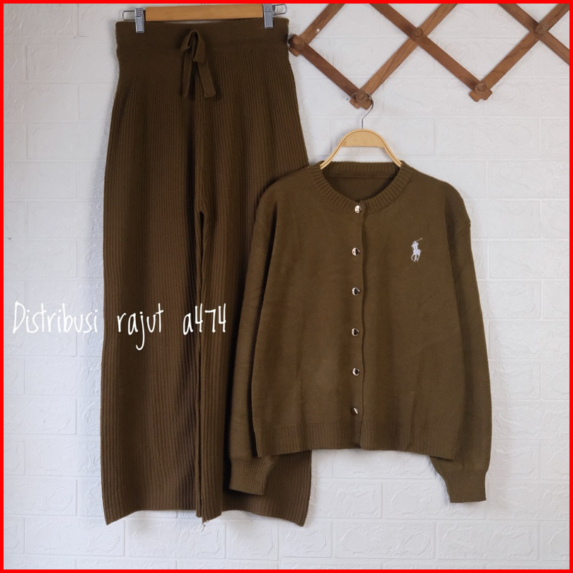 Oneset Nana Cardigan Rajut Kancing Setelan Celana Kulot Rajut Wanita
