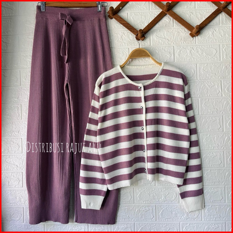 Oneset Agnia Cardi Setelan Celana Kulot Rajut Wanita