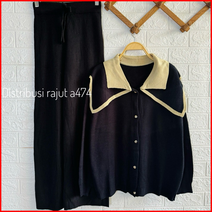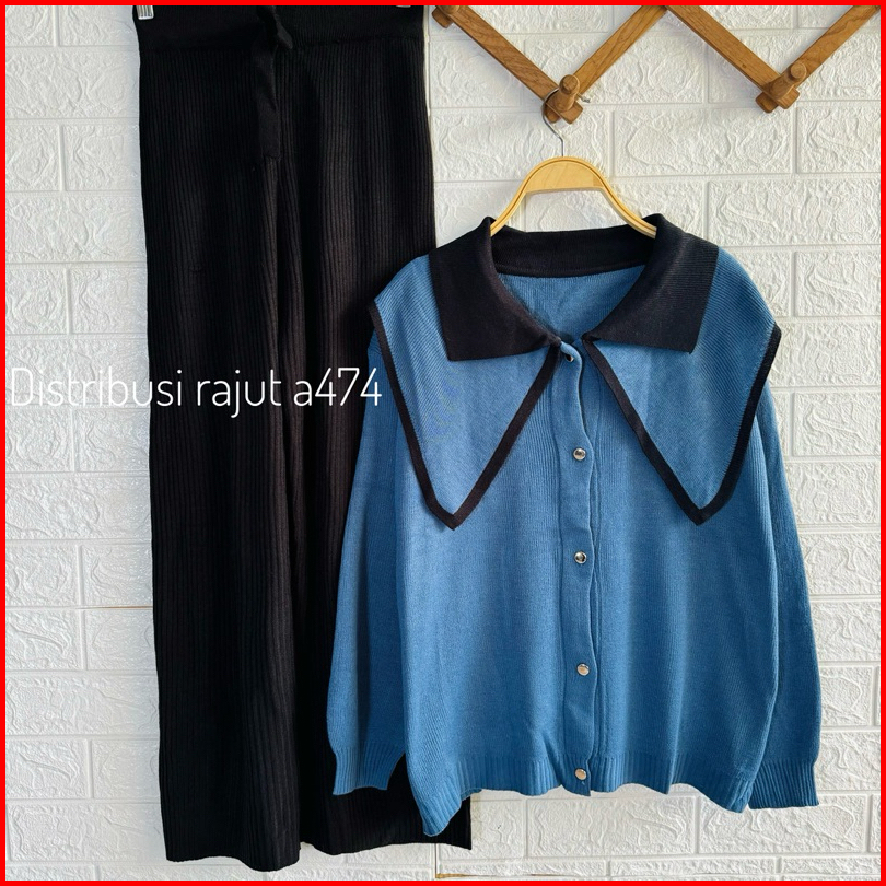 Oneset Baju Rajut Pesolia Setelan Celana Kulot Rajut Wanita Korea