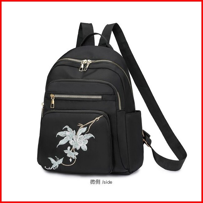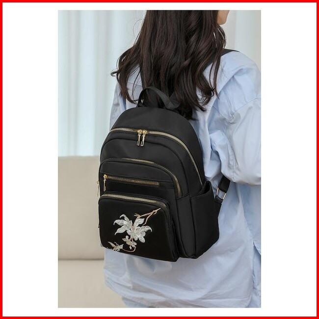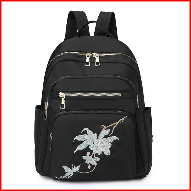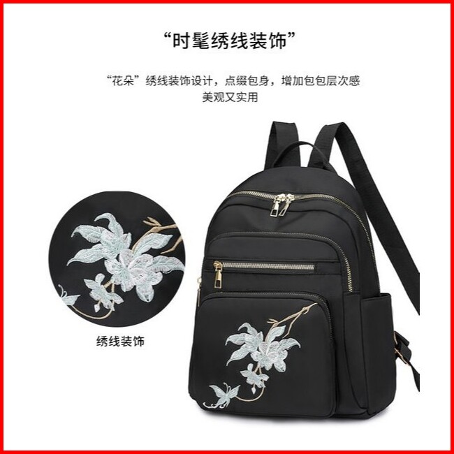 Tas Ransel Hitam Dengan Hiasan Bunga Tas Ransel Nylon Waterproof 2025