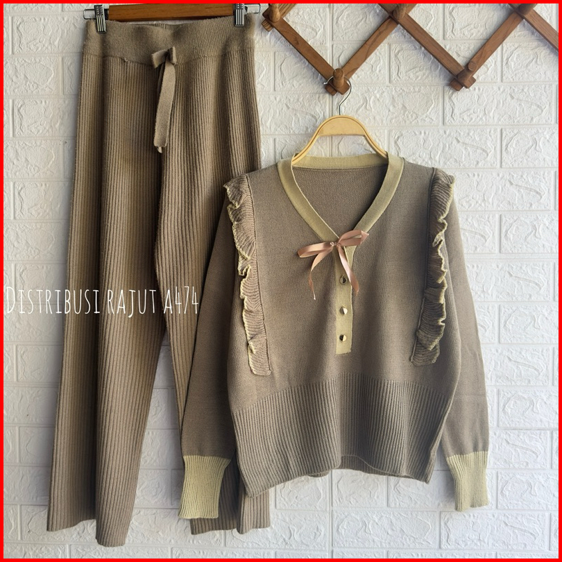Oneset Helena Top Bluse Setelan Celana Kulot Rajut Wanita