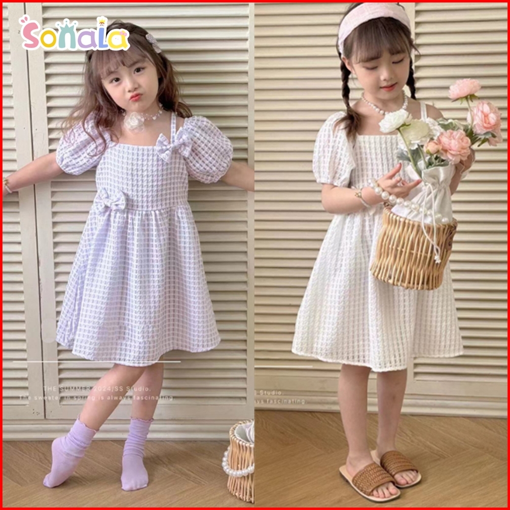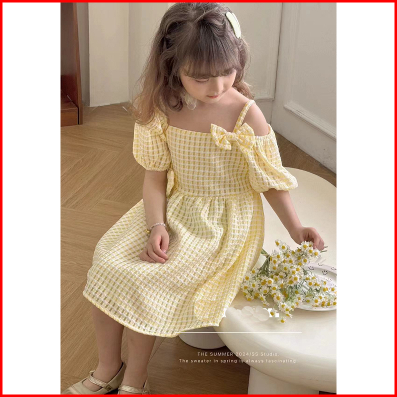 Gaun Anak Perempuan Usia 3-8 Tahun Putri Kotak-kotak Tiga Dimensi Anak Perempuan