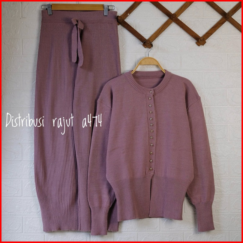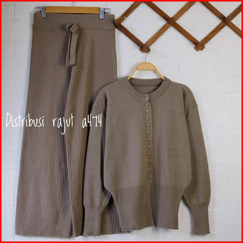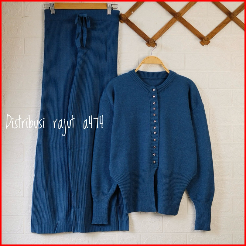 Oneset Cardigan Rajut Yezi Setelan Celana Kulot Rajut Wanita Korea