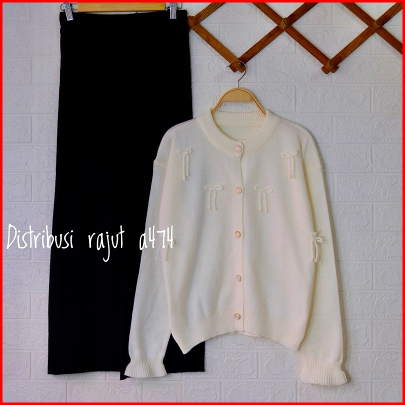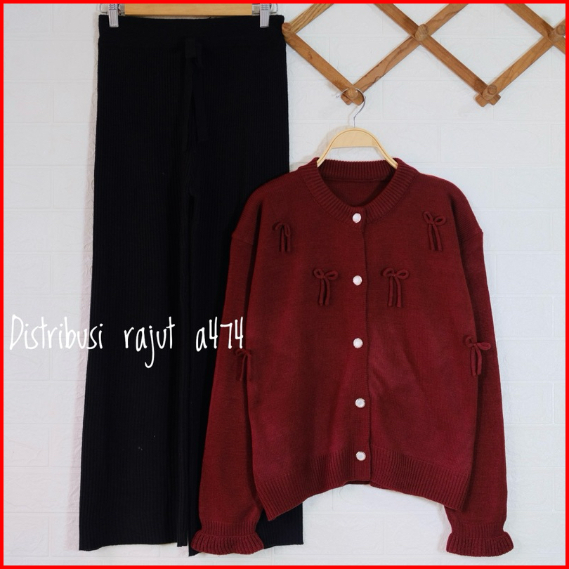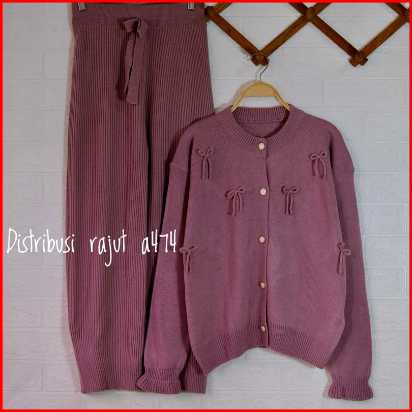 Oneset Cardigan Rose Setelan Celana Kulot Rajut Wanita