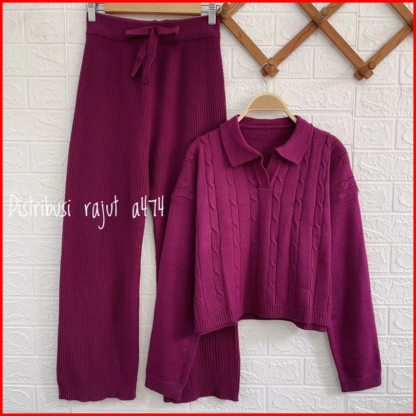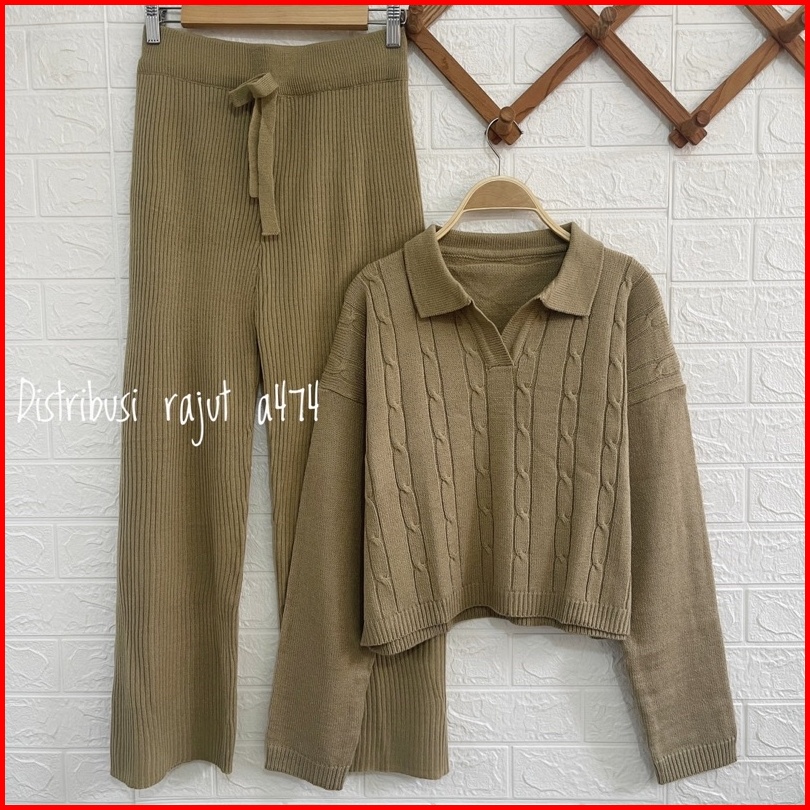 Oneset Rok Dan Kulot Blouse Sweater Kerah Cable