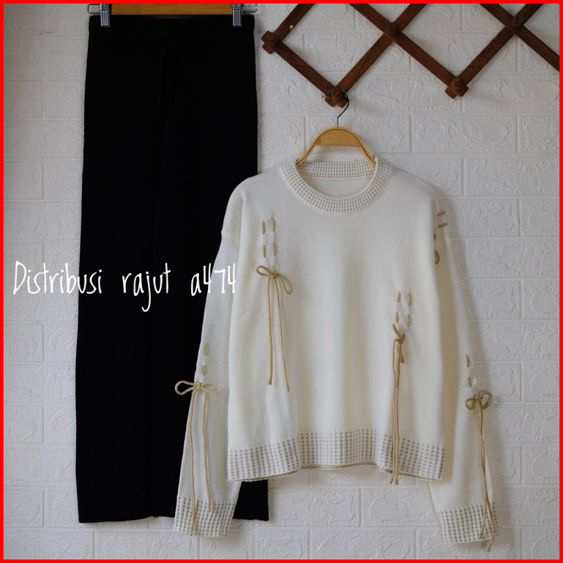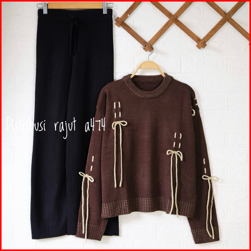 Oneset Sweater Rajut Dafifah Setelan Celana Kulot Rajut Wanita