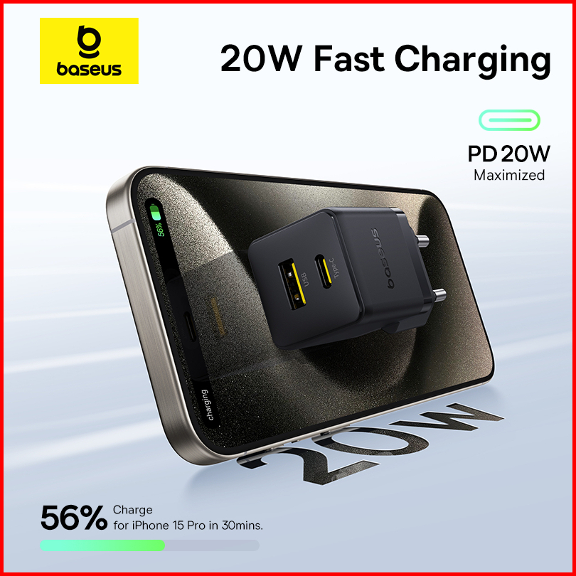 Baseus Charger Set 20w Fast Charging Palm Series Bct Cooling System Cut Off Plus Cable Type-c