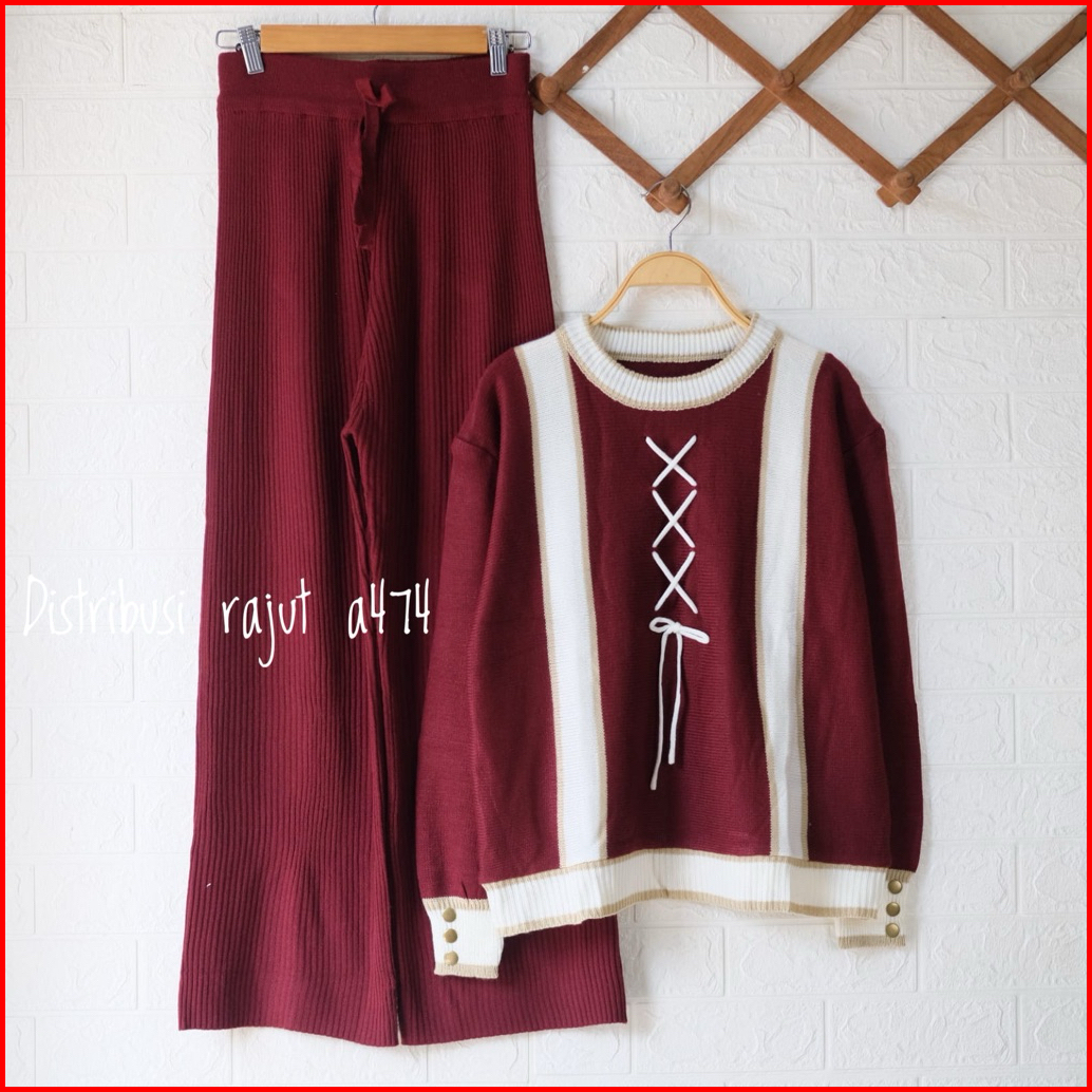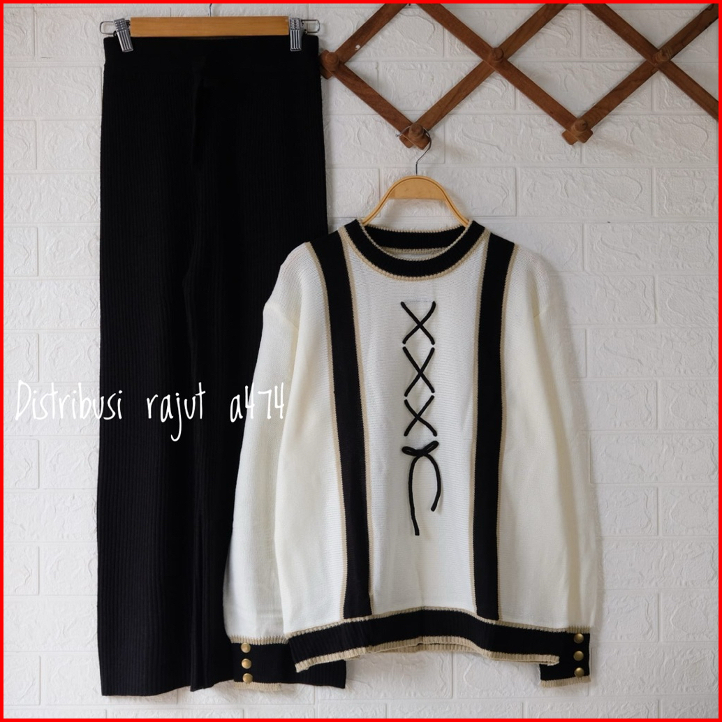 Oneset Harver Sweater Rajut Setelan Celana Kulot Rajut Wanita