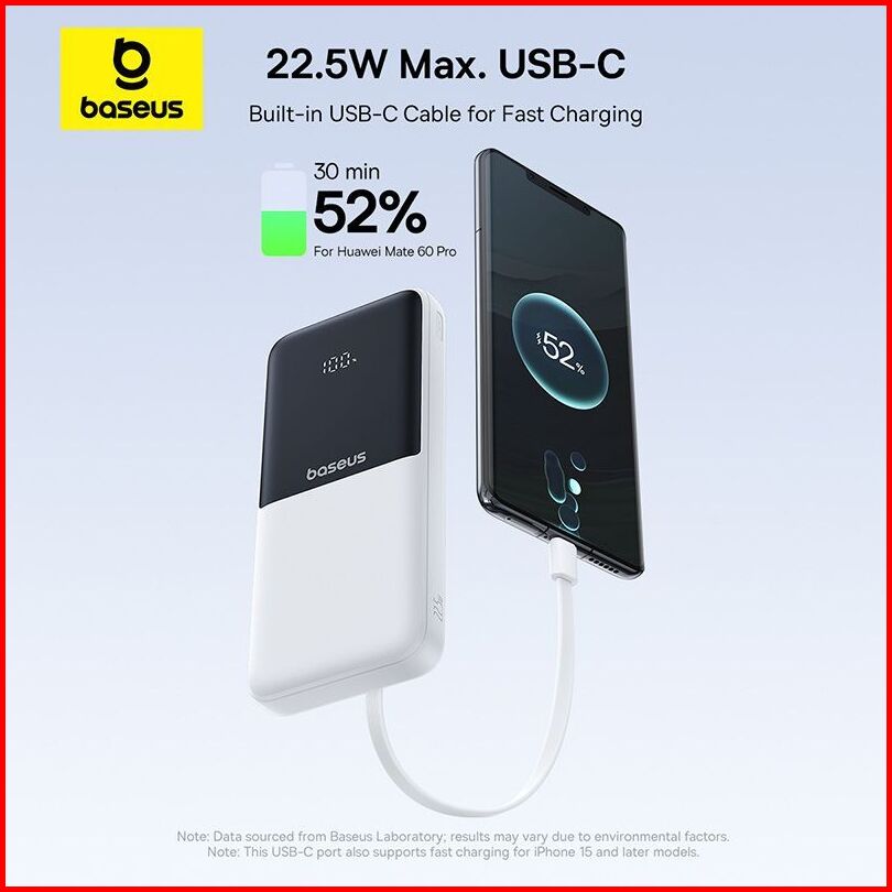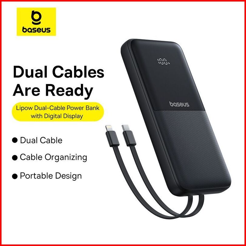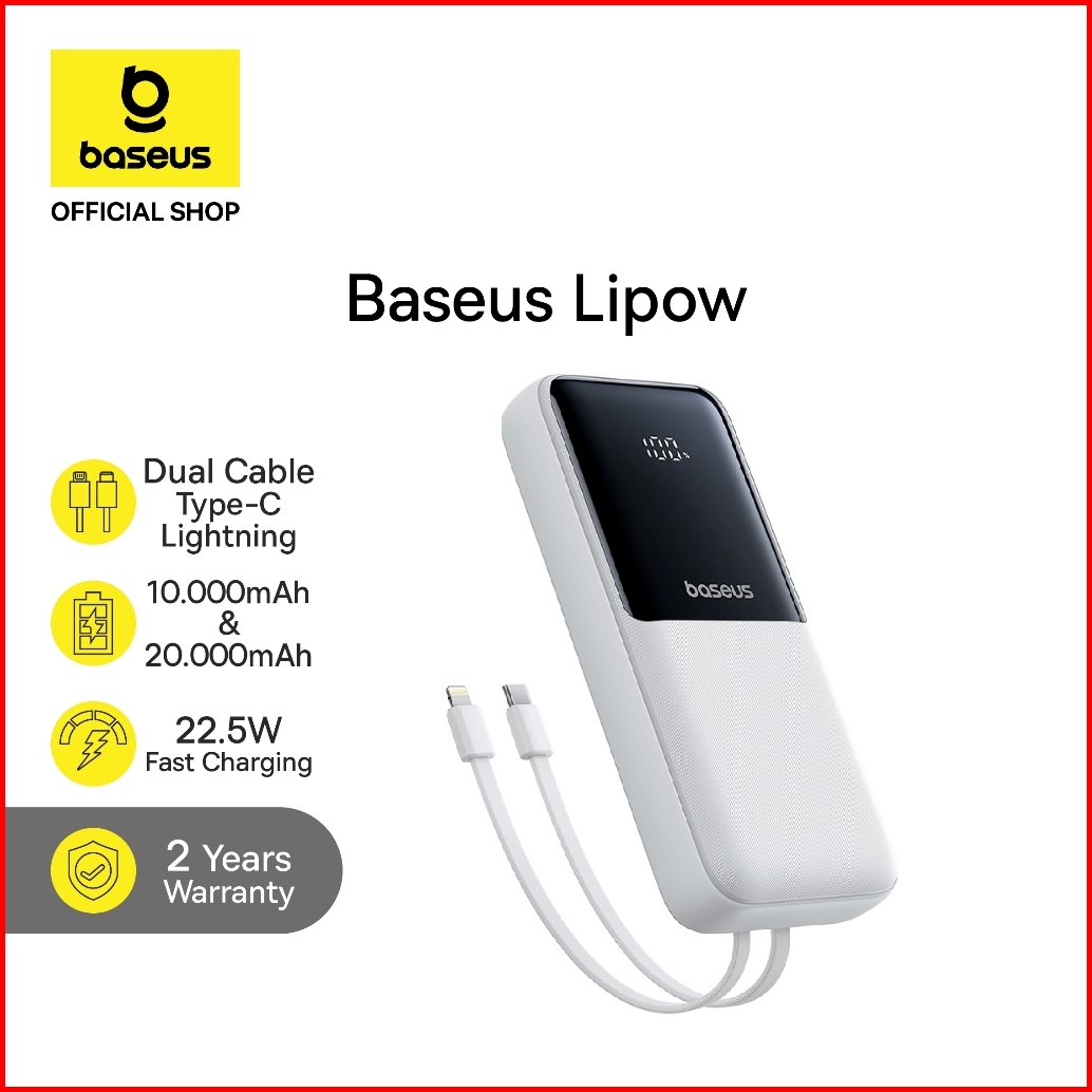 Baseus Power Bank Lipow 10000mah 20000mah 22.5w Dual-cable Type-c Lighting Digital Display