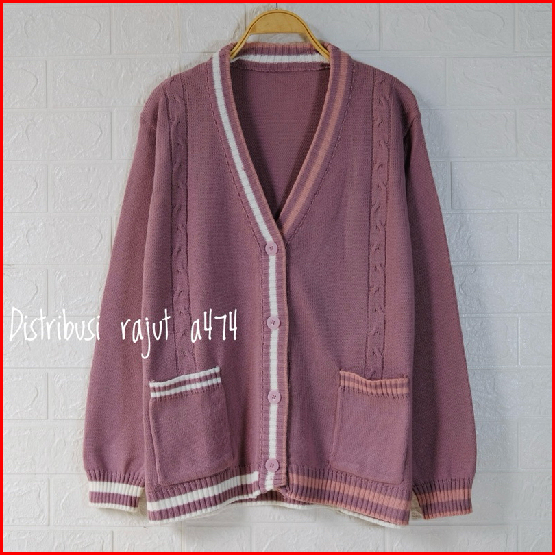 Eden Oversize Cardigan Rajut Kancing Saku Stripe Motif Cable Wanita Lengan Panjang