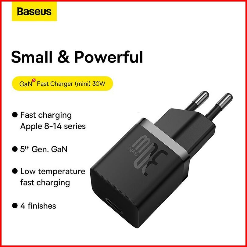 Baseus Kepala Charger Gan5 Plus Fast Charging Mini 30w Eu Type C Travel