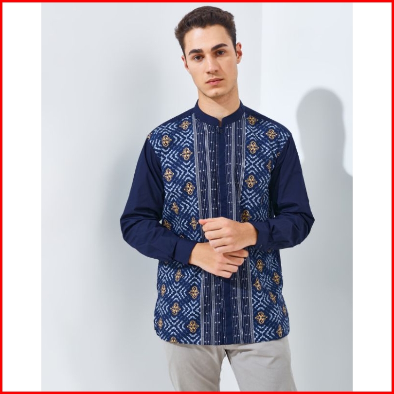 Aldebaran- Kemeja Koko Lengan Panjang Raya Navy 100 Katun Printing
