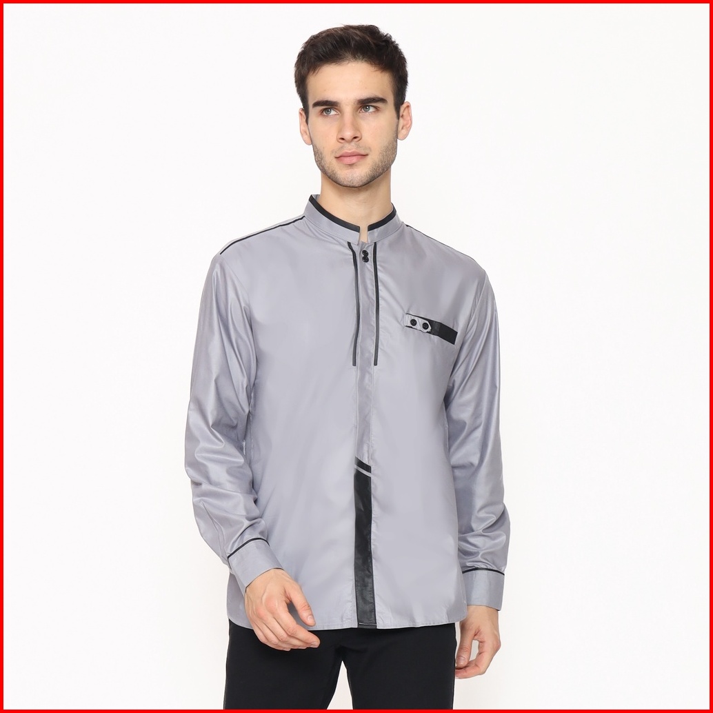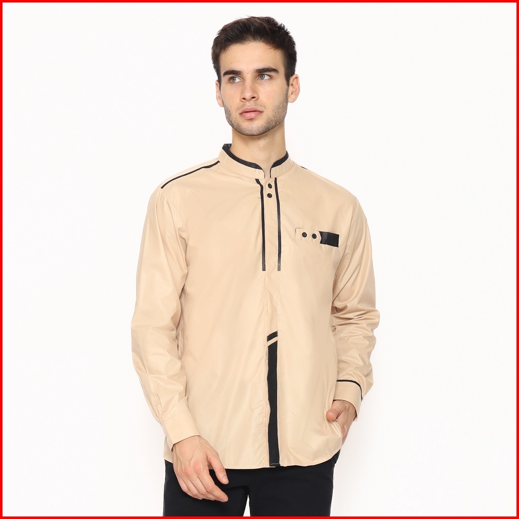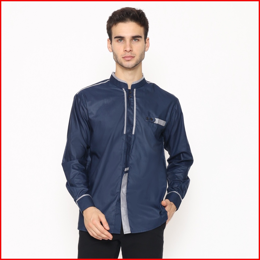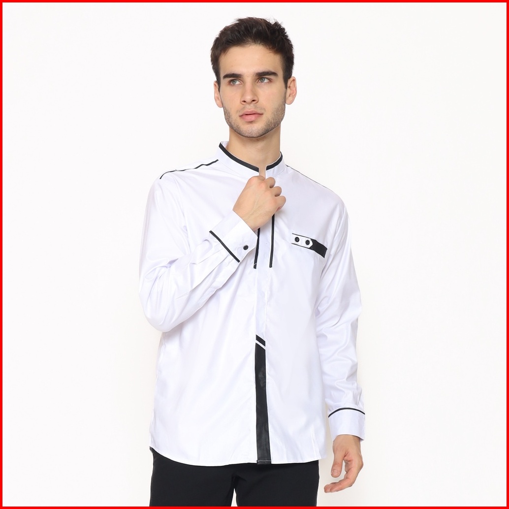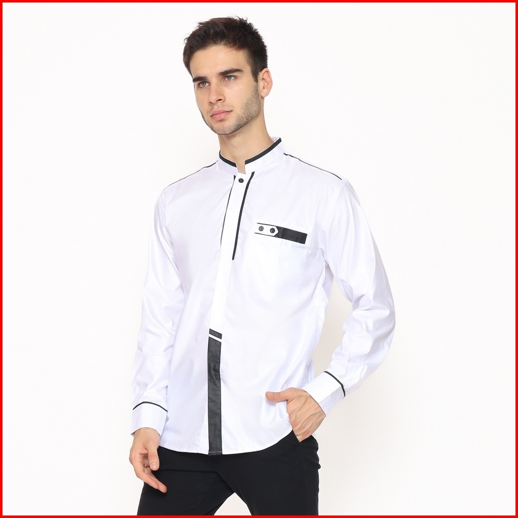 Alawi - Baju Koko Pria Lengan Panjang Motif Khatulistiwa Pakaian Muslim Warna Putih M L Xl