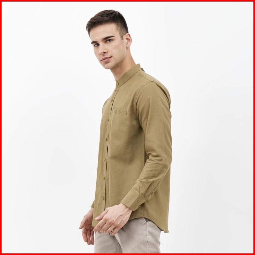 Aldebaran Koko Pria Basic Hijau Polos Olive Lengan Panjang