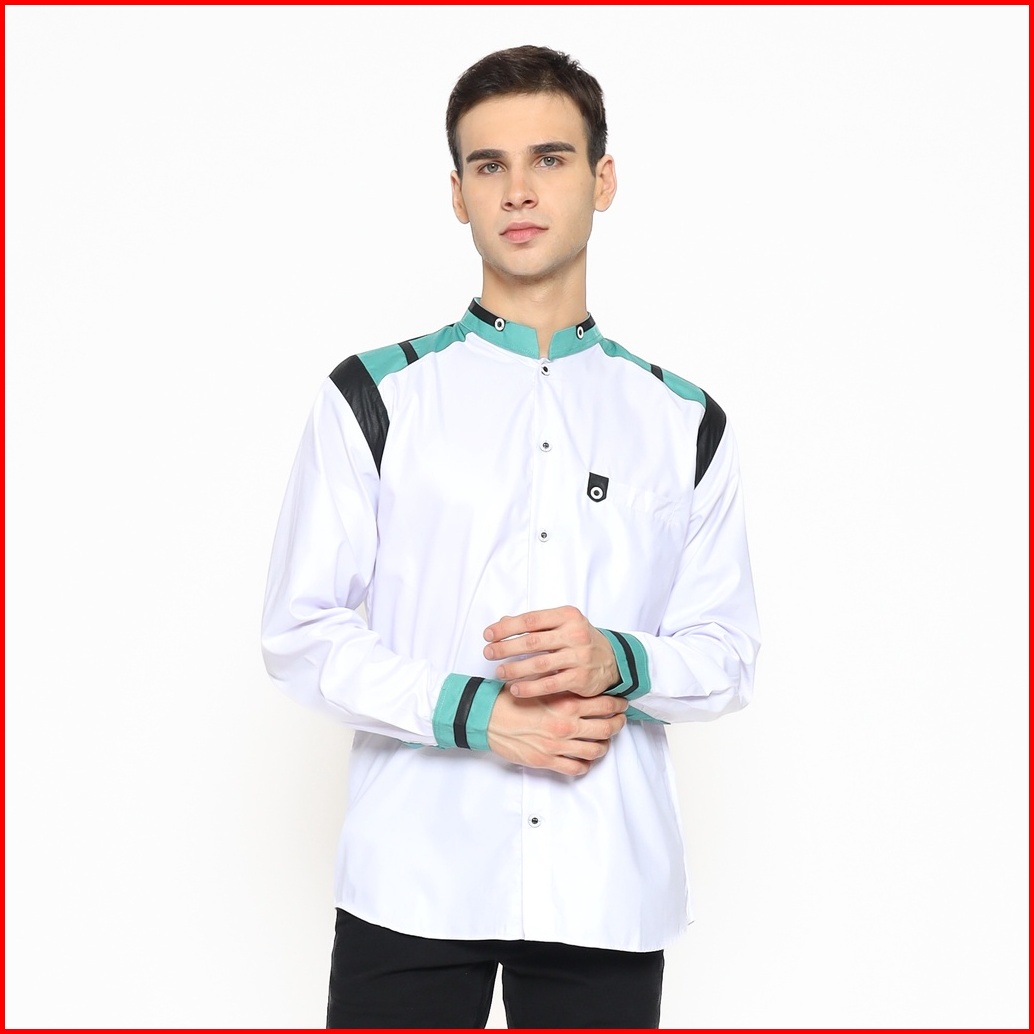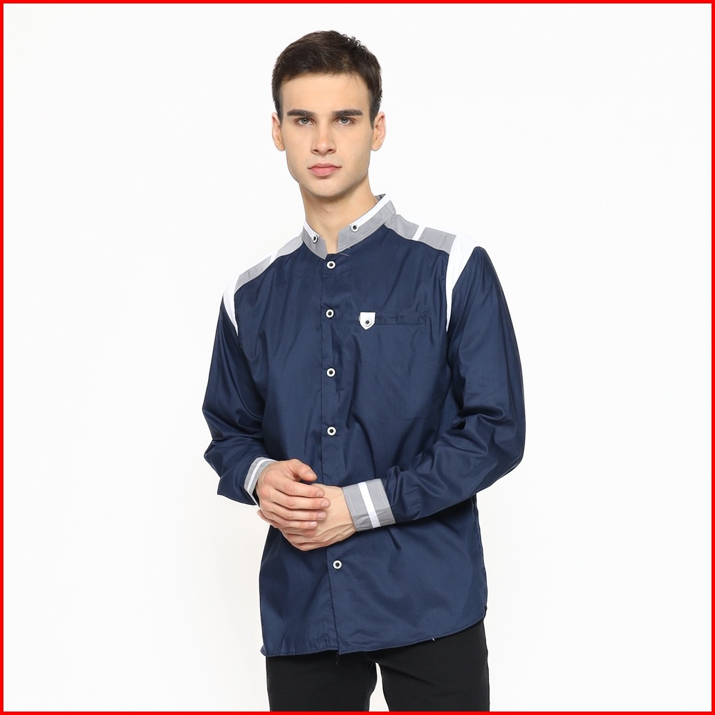 Alawi - Baju Koko Pria Muslim Lengan Panjang Motif Tanduk Rusa Warna Navy M L Xl