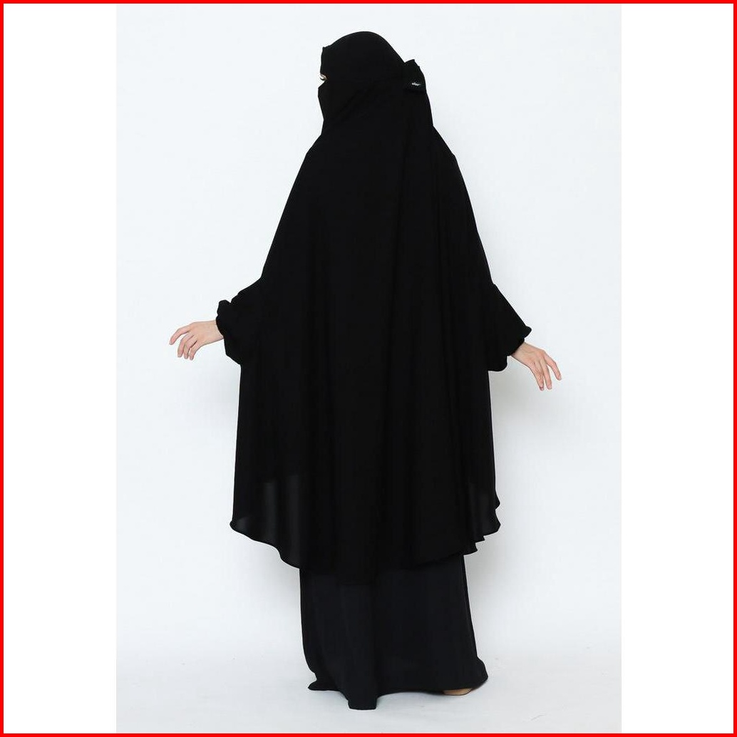 Khimar Syari Arumi Front Zipper Dan Niqab Bandana Hitam Bahan Halus Allev