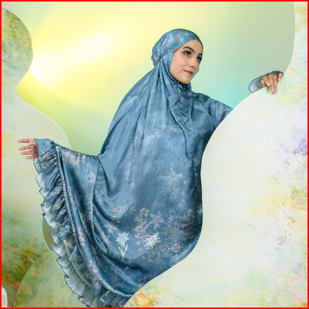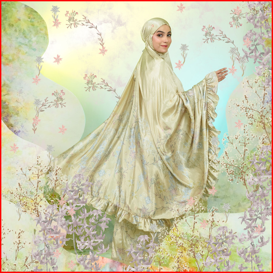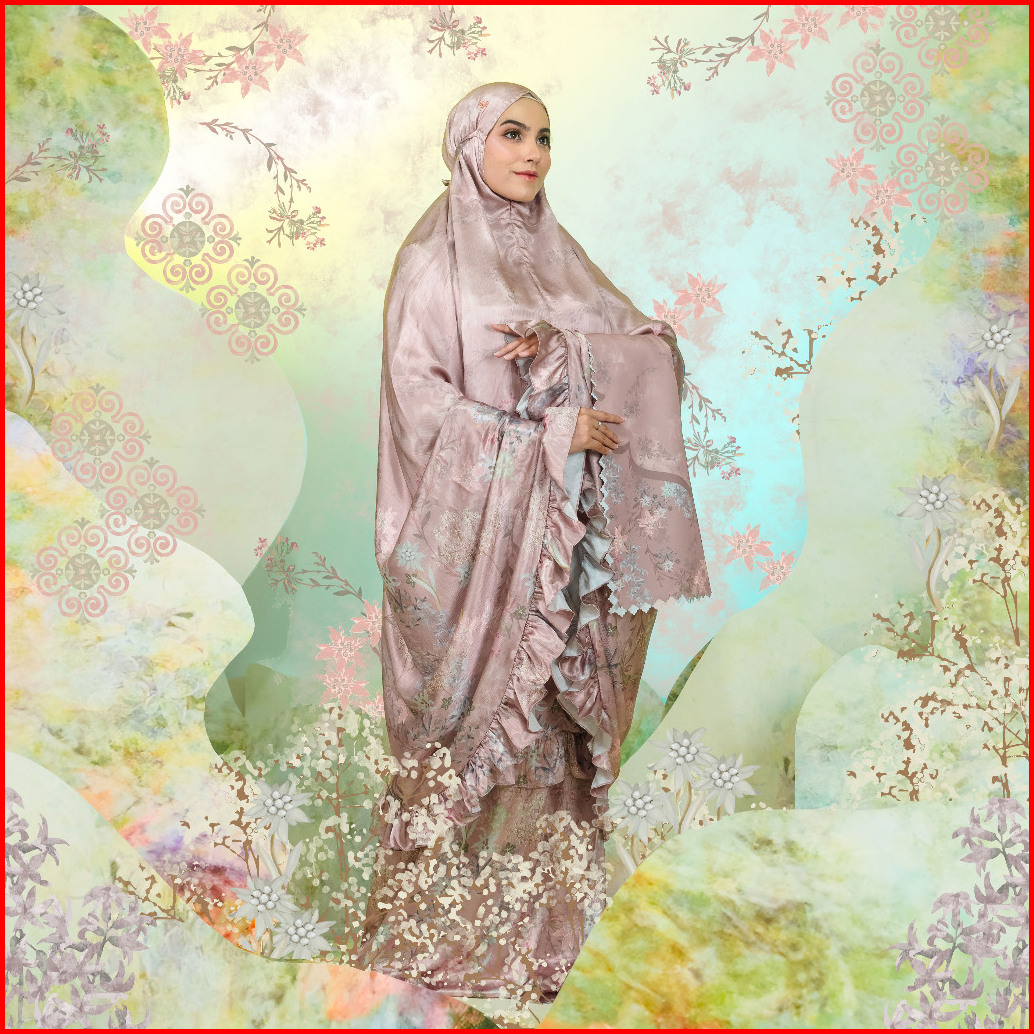 Veselka Mukena Dewasa 2in1 Layla Prayerset Sajadah Traveling Motif Bunga Ruffle Resleting Zipper