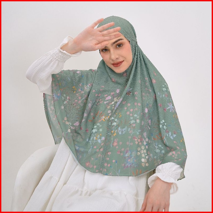 Veselka Tavia Bergo Hijab Printing Khimar Motif Bunga Syari Jilbab Kerudung Praktis Muslimah