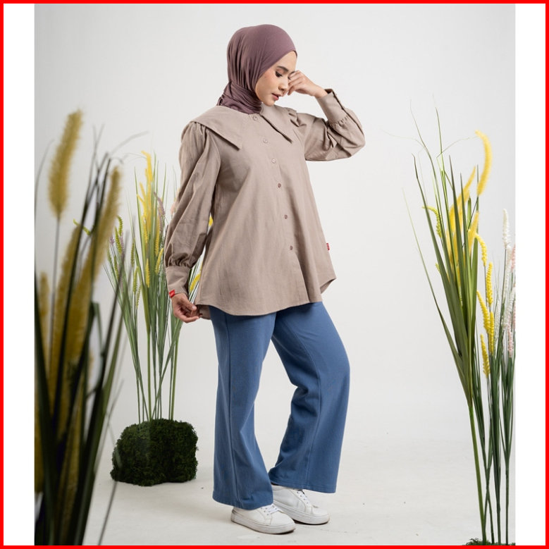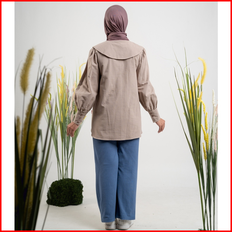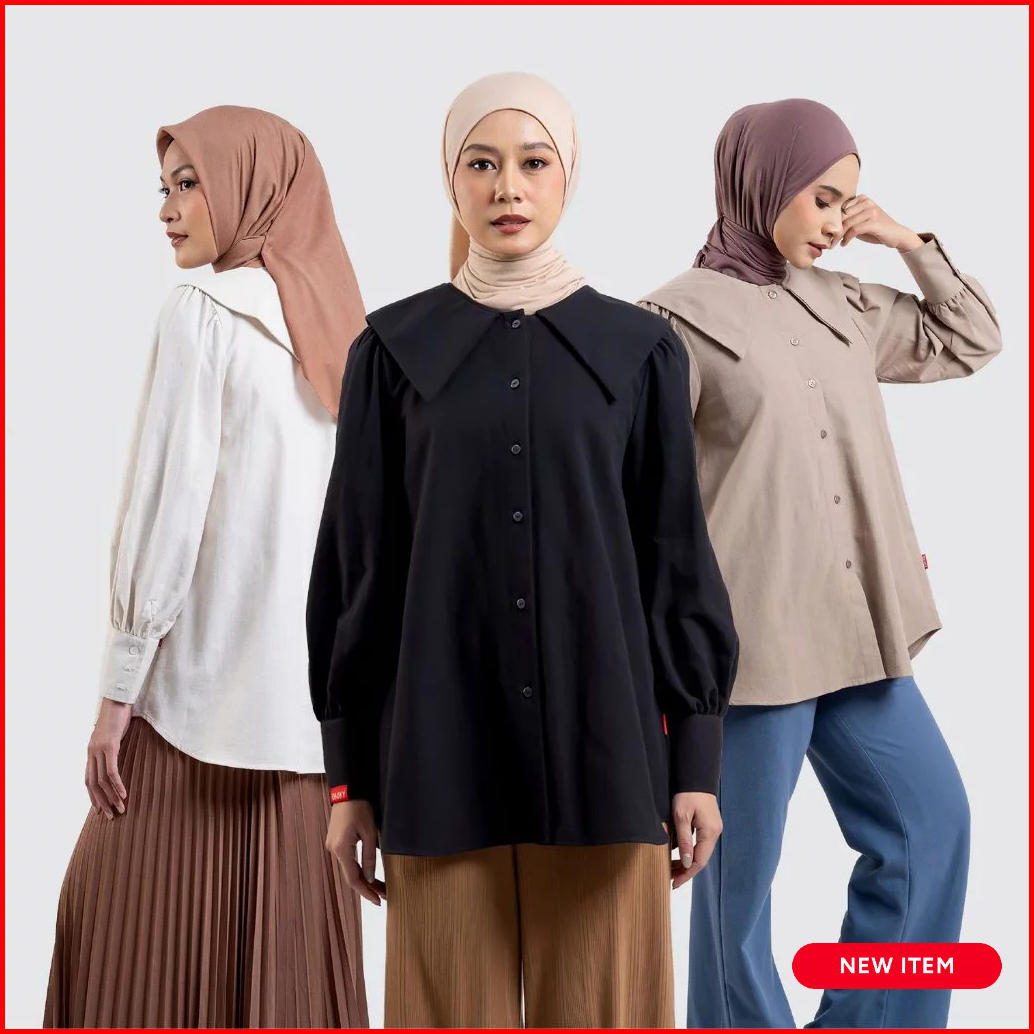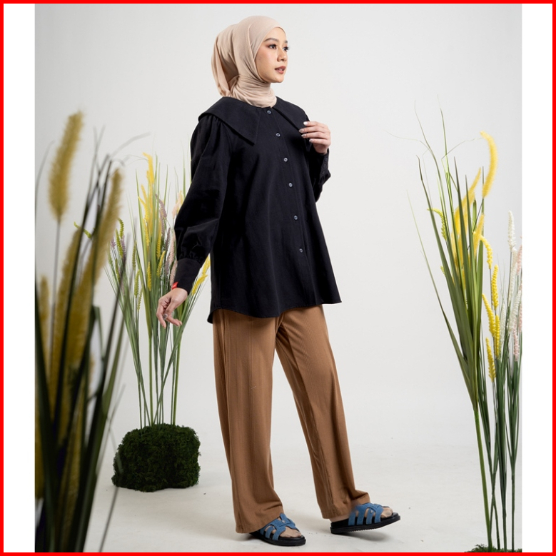 Dauky Atasan Blus Hitam Wanita Lengan Panjang M Tunic Wide Collar Linen