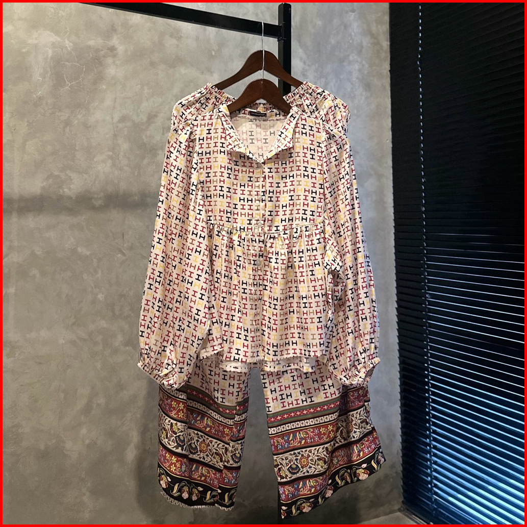 Zyt - Aisyah Baju Setelan One Set Wanita Kekinian Atasan Jumbo Celana Kulot Rayon Motif