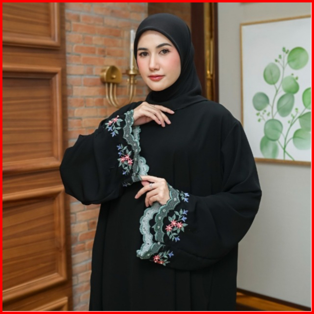 Abaya Alula Mina Nada Jetblack Bordir Gamis Mewah