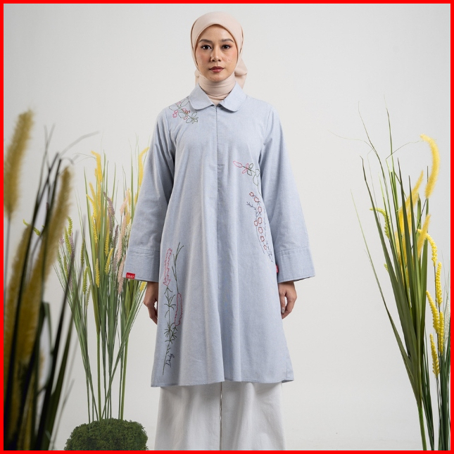 Dauky Atasan Blus Wanita Lengan Panjang L Tunic Wild Flower