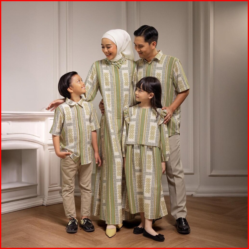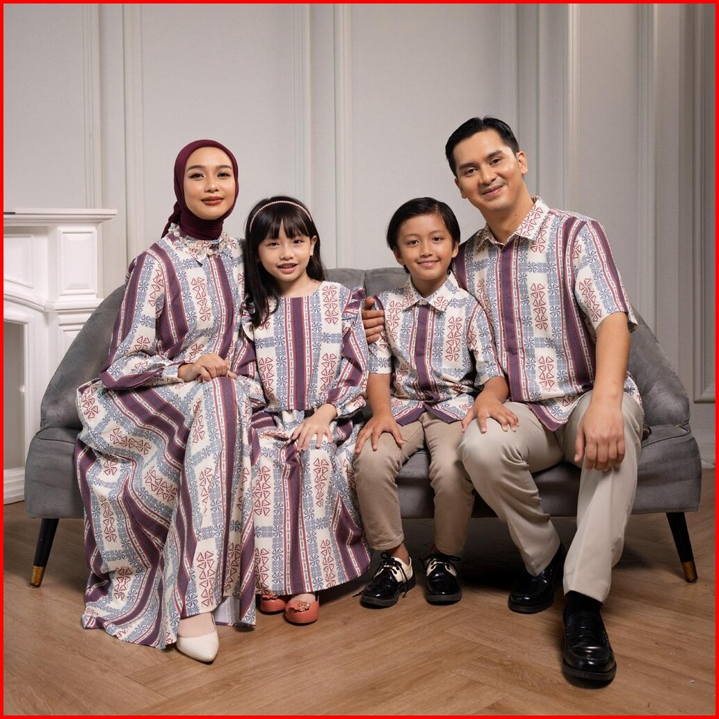 Zm Zaskia Mecca - Sarimbit Family Set Lambang - Edisi Monogram Gamis Wanita Kemeja Koko Pria Anak